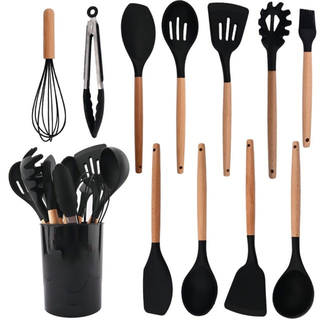 KIT de Utensílios Para Cozinha em Silicone e plástico e Bambu 12 Peças
