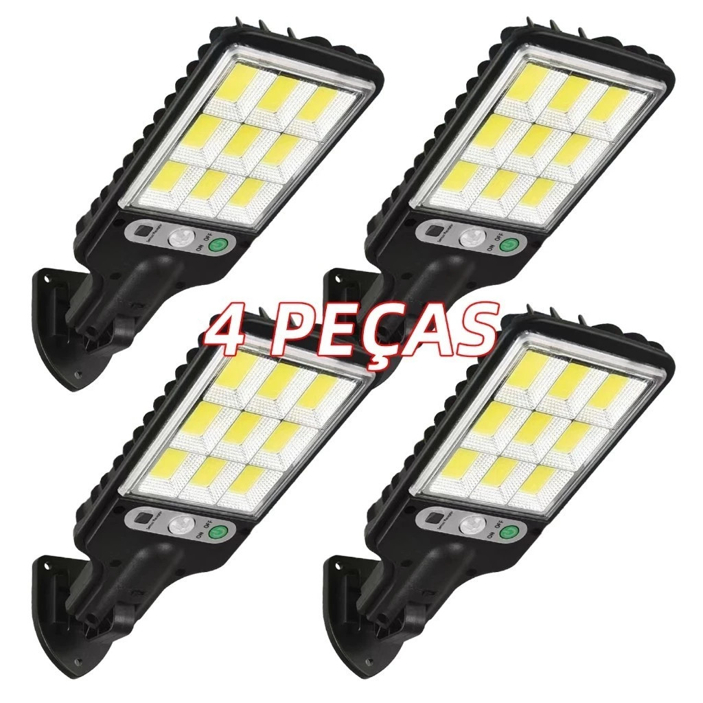 Luminária Solar Parede 108 COB Carregar LED Luz Branco frio Prova D'Água Sensor Presença 3 funções