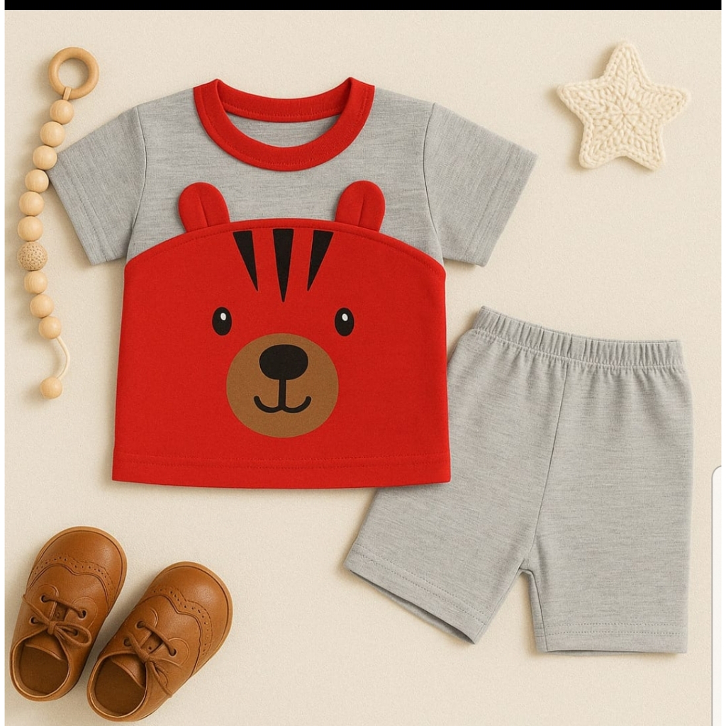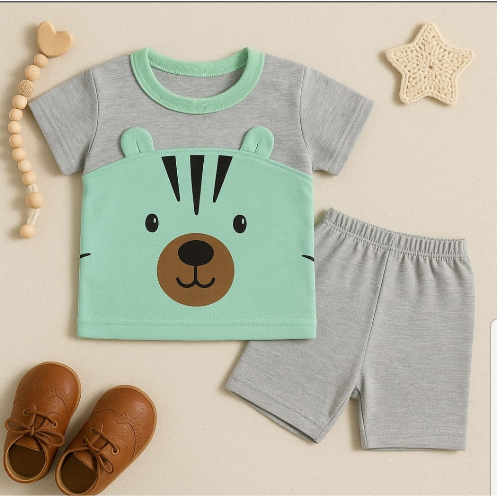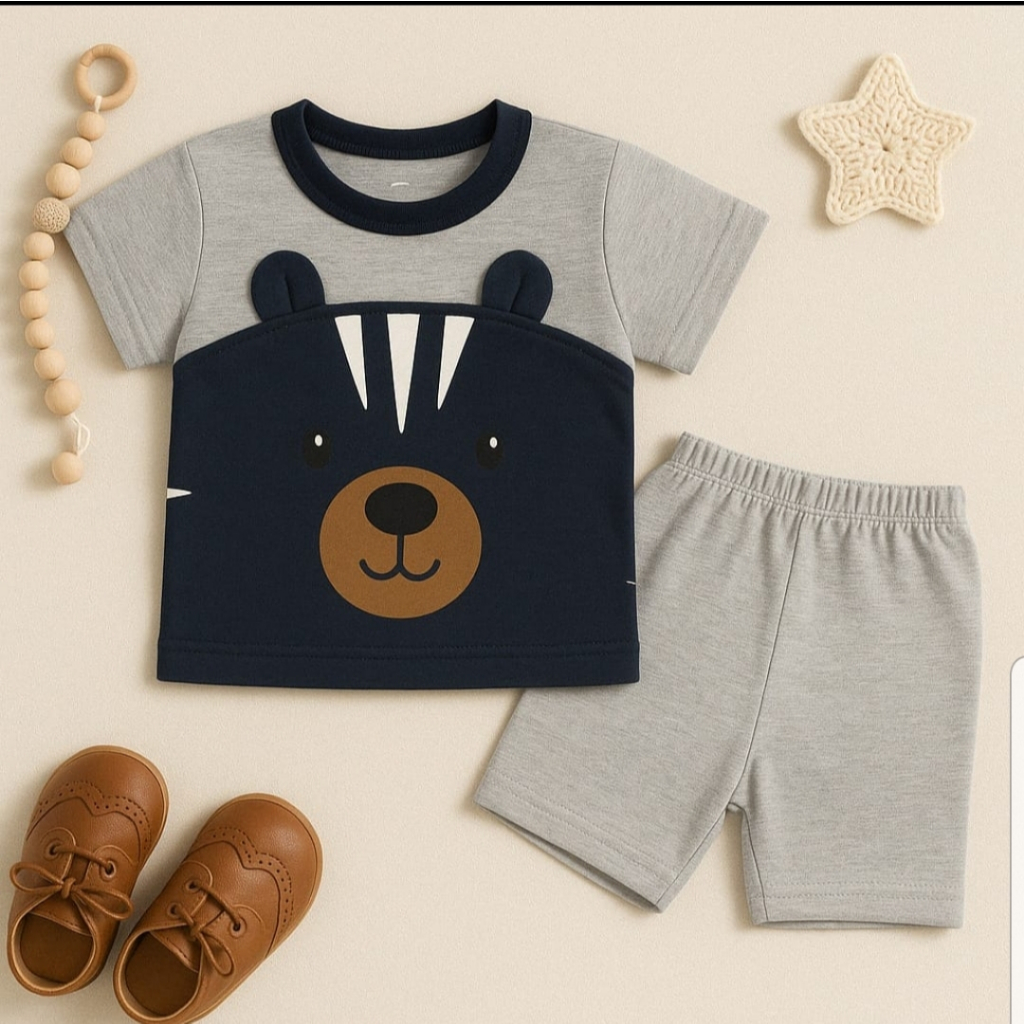 CONJUNTO PARA BEBÊ CAMISETA URSO COM SHORTS