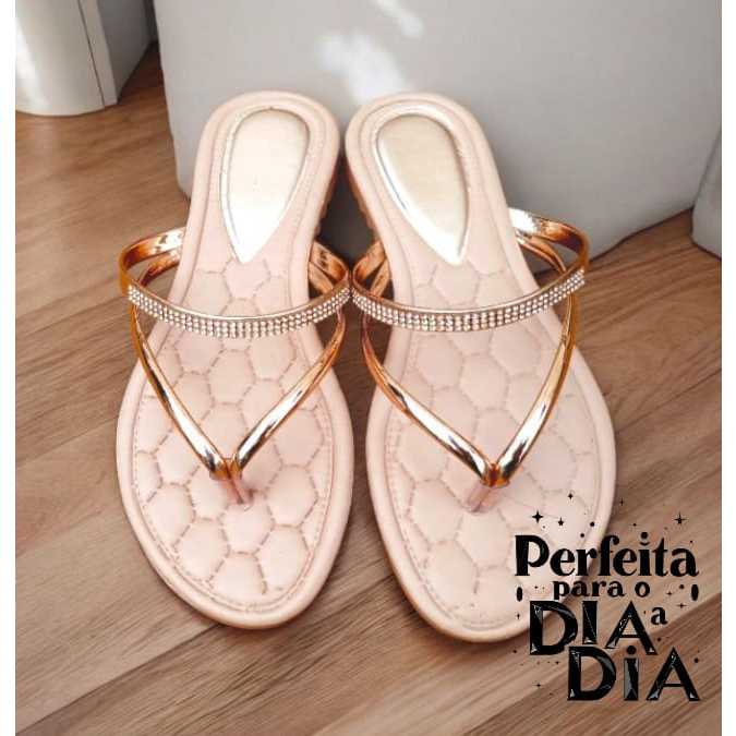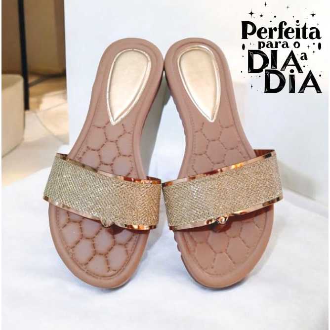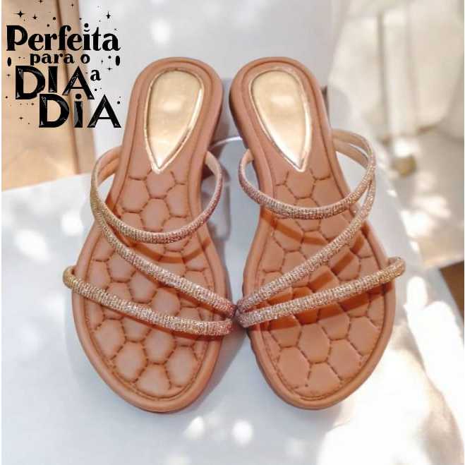 Sandália Rasteira Feminina Rasteirinha Detalhe com Pérolas Delicada e Perfeita