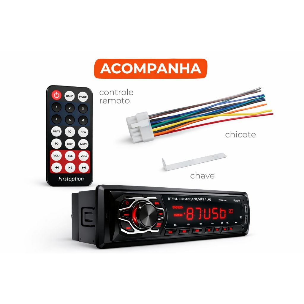 Rádio Mp3 1 Din Som Automotivo Carro 2 Usb Sd Bt Universal