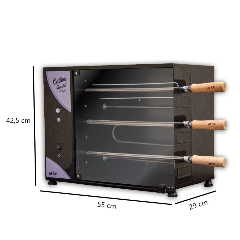 Churrasqueira Elétrica Rotativa 3 Espetos Cattiva Smart Arke Preta 110v