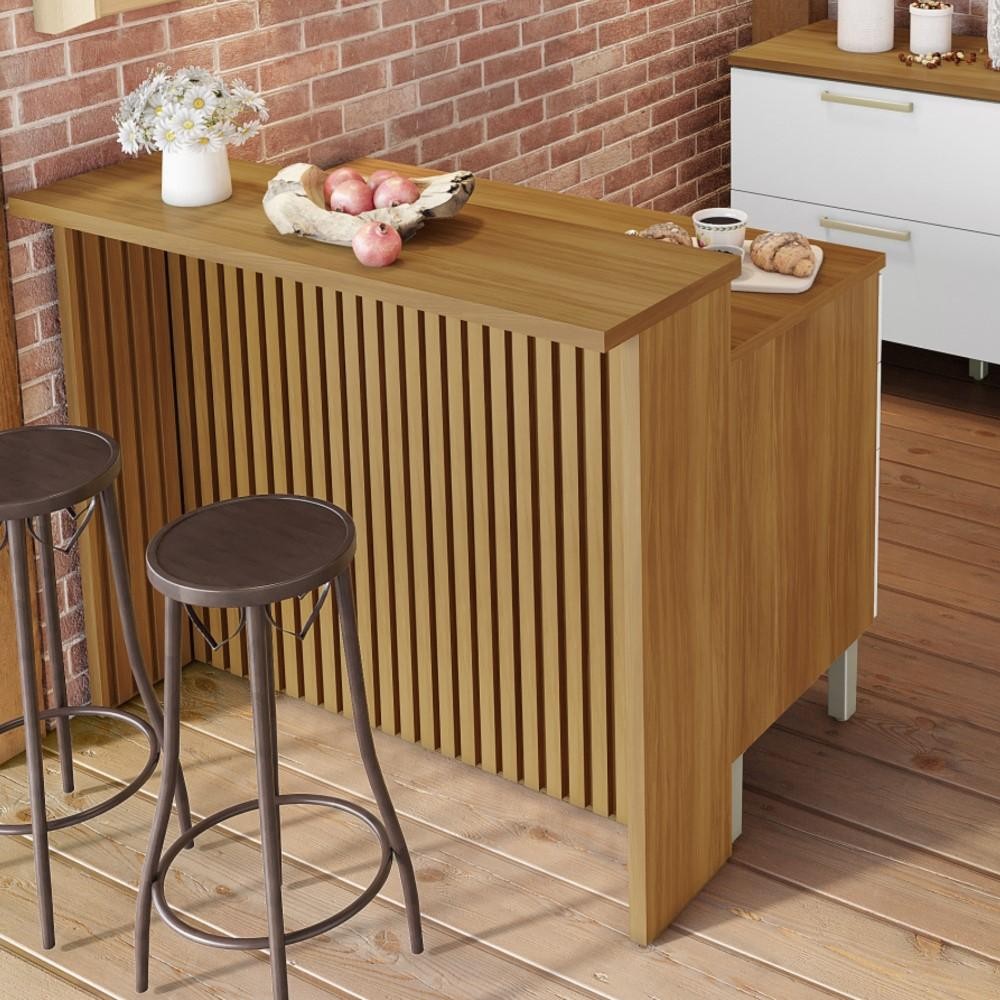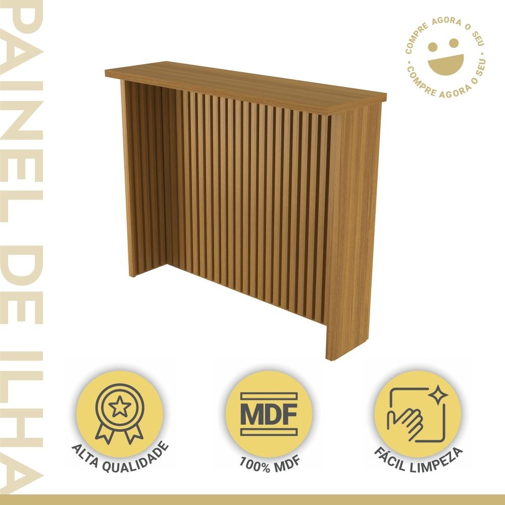 Painel de Ilha Ripado Bancada para Cozinha Nesher 120 cm MDF Freijó
