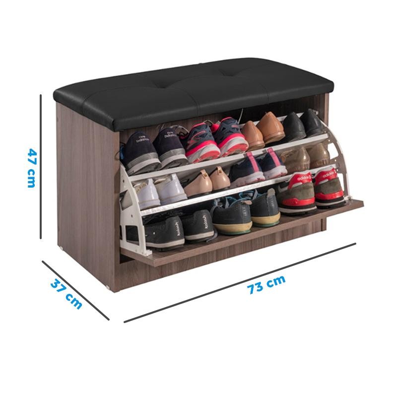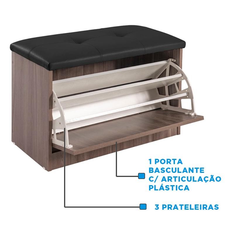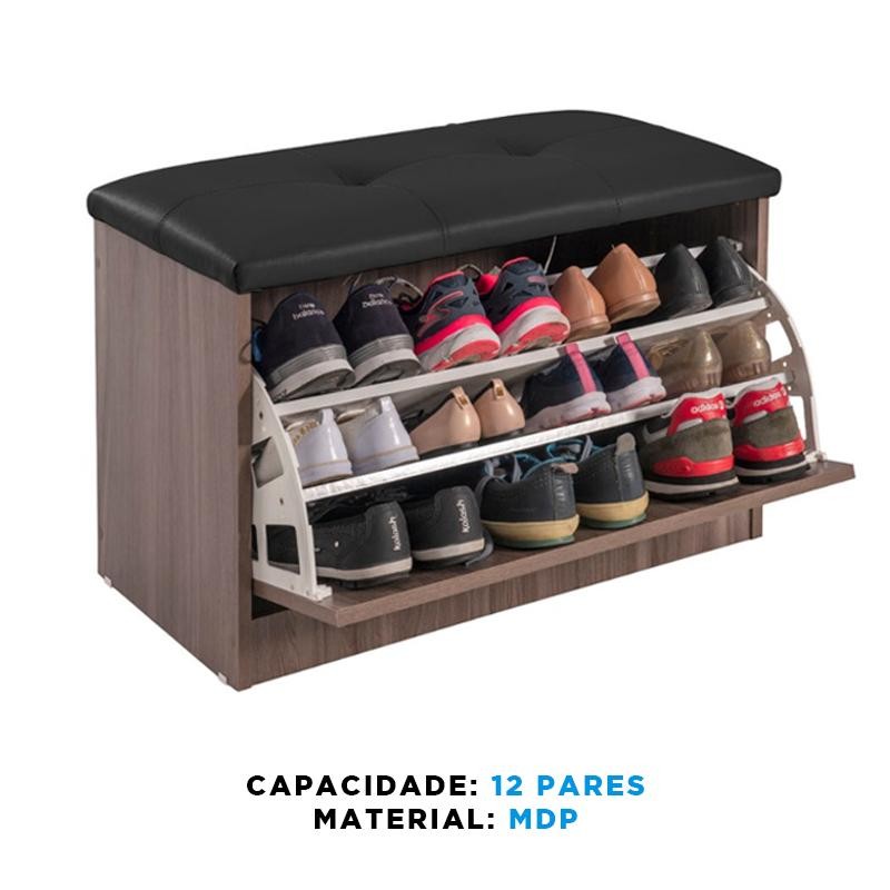 Sapateira Puff Bau Cama Versatile Premium Luxo Até 12 Pares Marrom - Estofado Preto