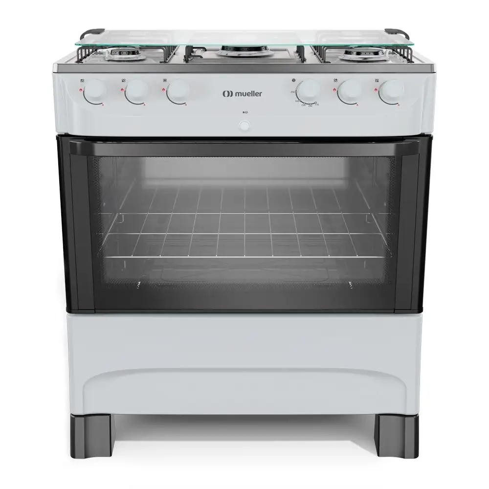 Fogão 5 Bocas a Gás Mueller com Acendimento Automático e Forno 81,6L Branco Bivolt - MFI5BB