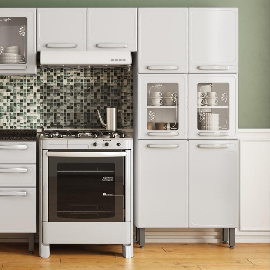 Armário Paneleiro Duplo Bertolini Evidence com Vidro Em Aço 6 Portas Cor Branco