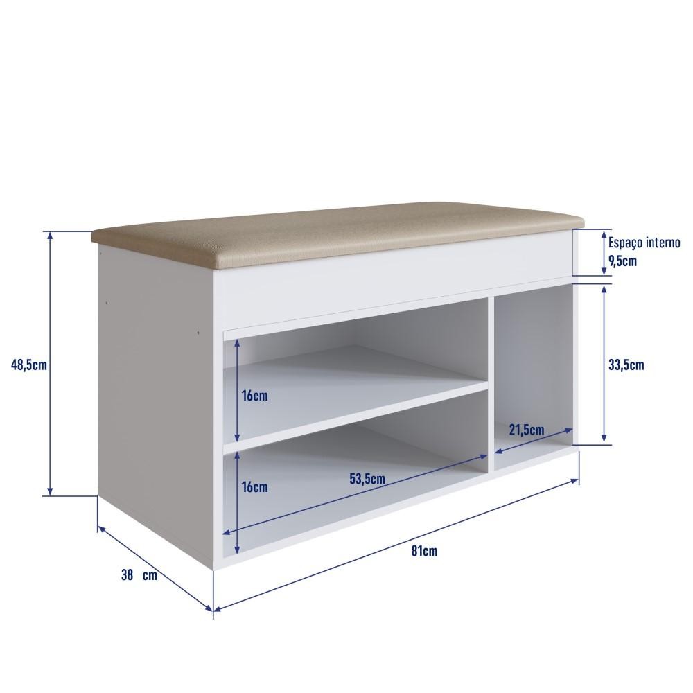 Sapateira Baú Puff Estofado Baixo Com Tampa 3 Nichos Prateleira Organizador Multiuso Branca