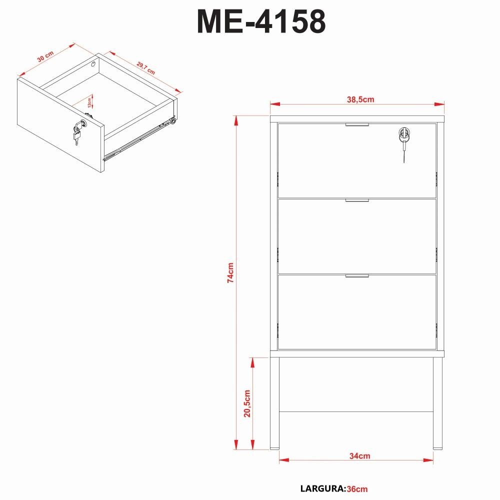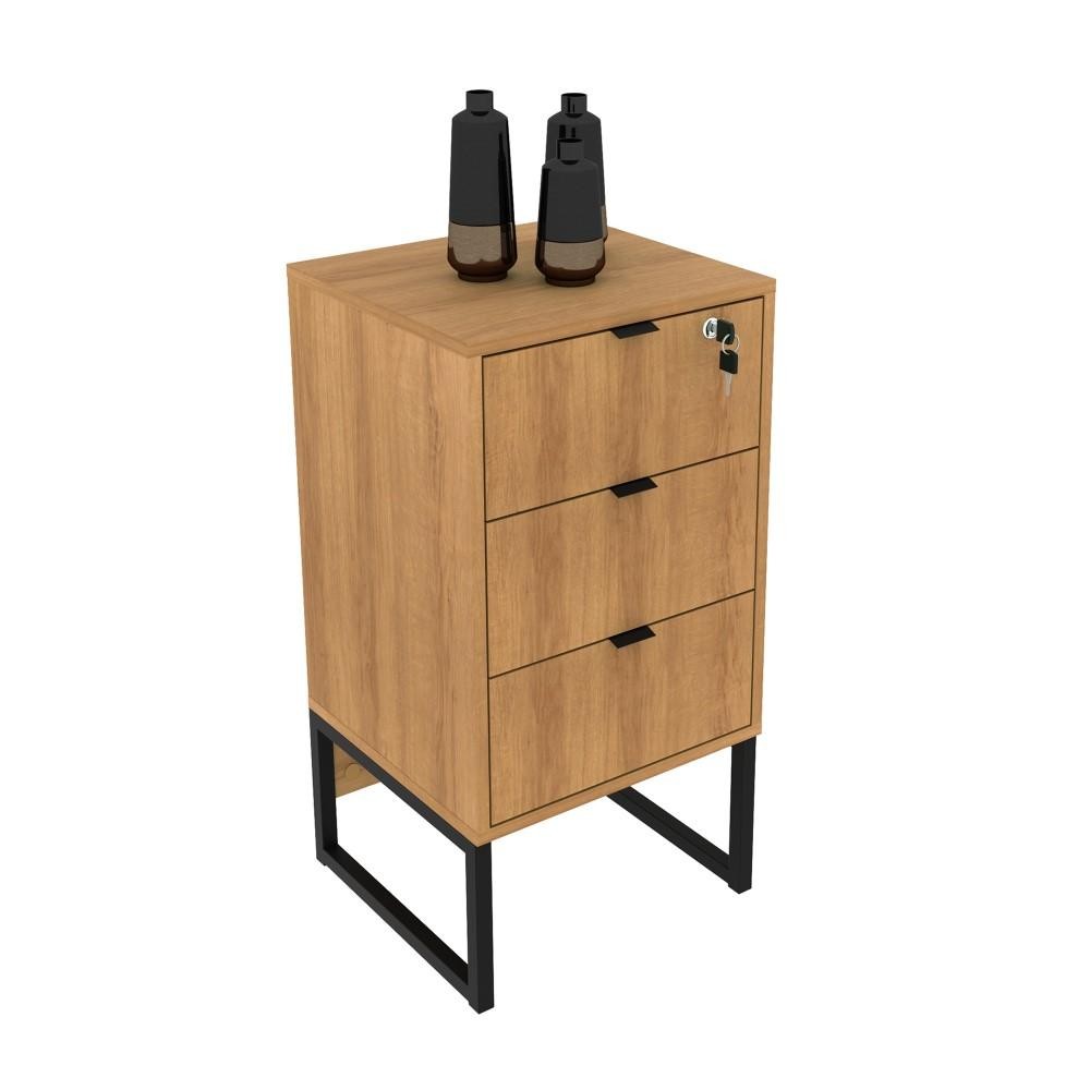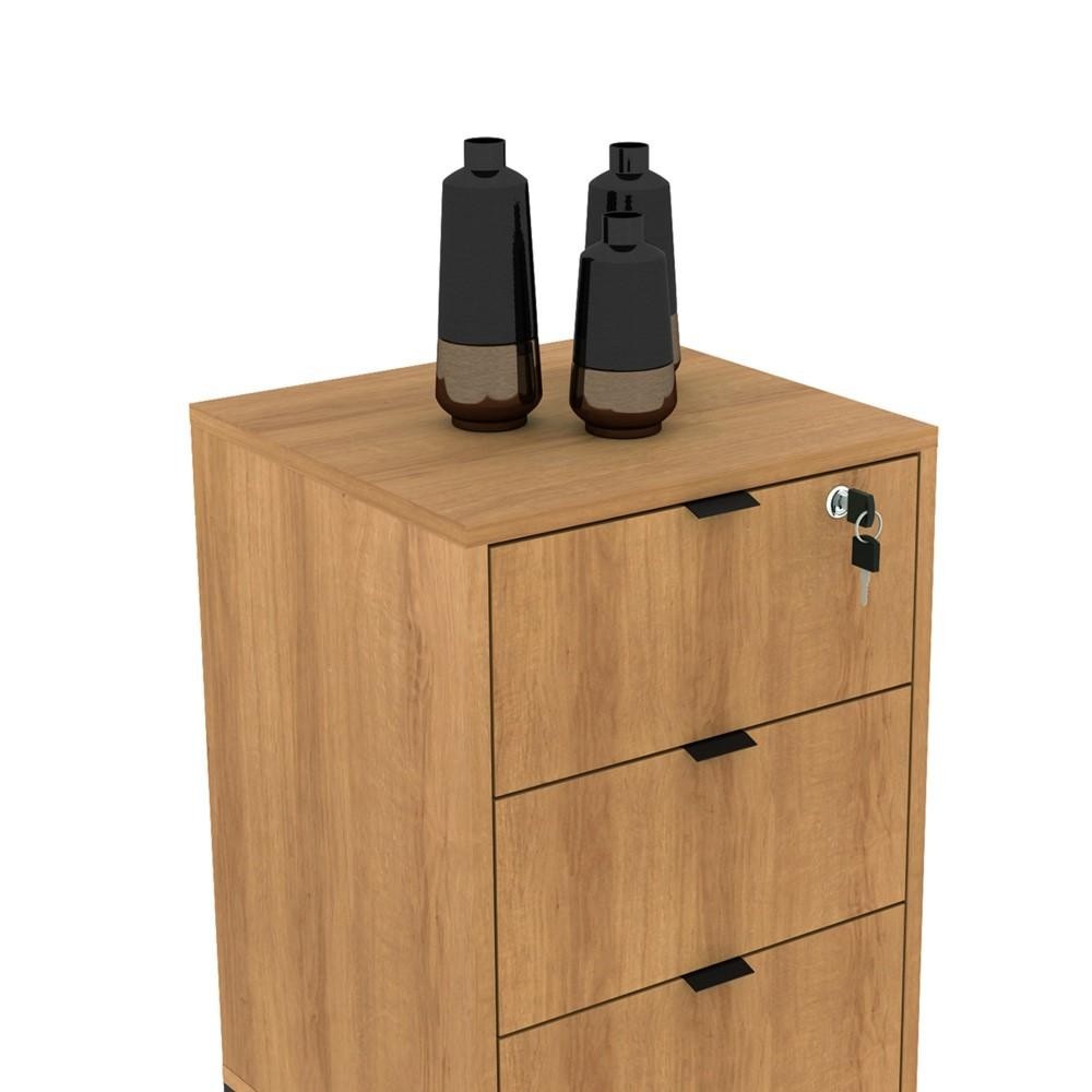 Gaveteiro Gabinete Balcão 3 Gavetas Com Chave Escritório Marrom Preto