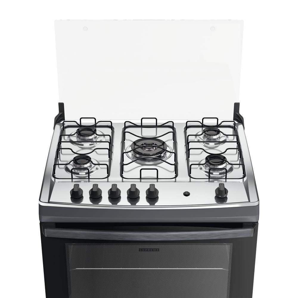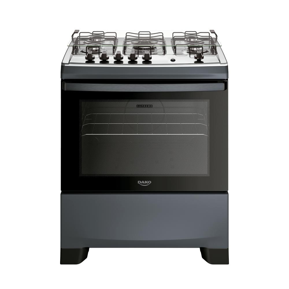 Fogão 5 Bocas a Gás Dako Supreme com Mesa de Inox e Forno 100L Titanium Bivolt