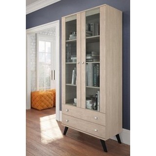 Cristaleira Armário Retrô Patina 4 Prateleiras 2 Portas de Vidro e 2 Gavetas