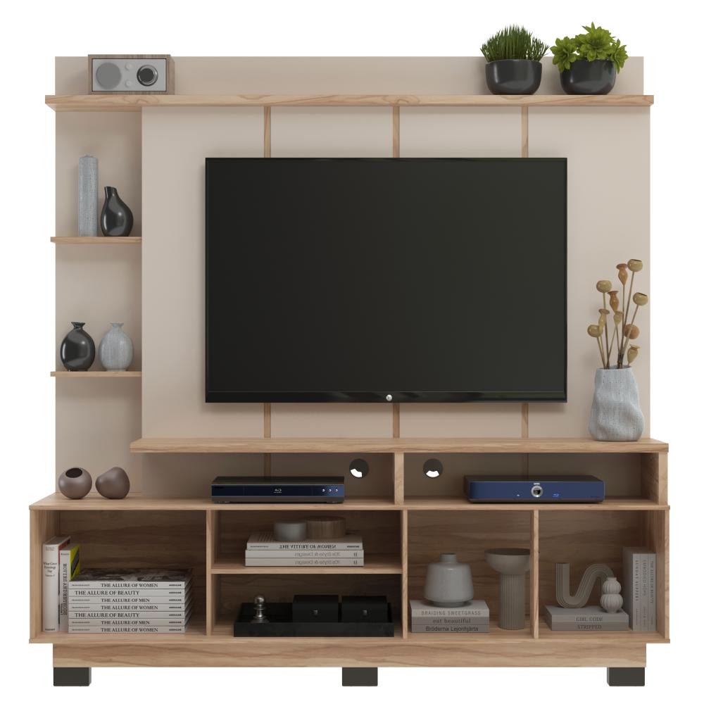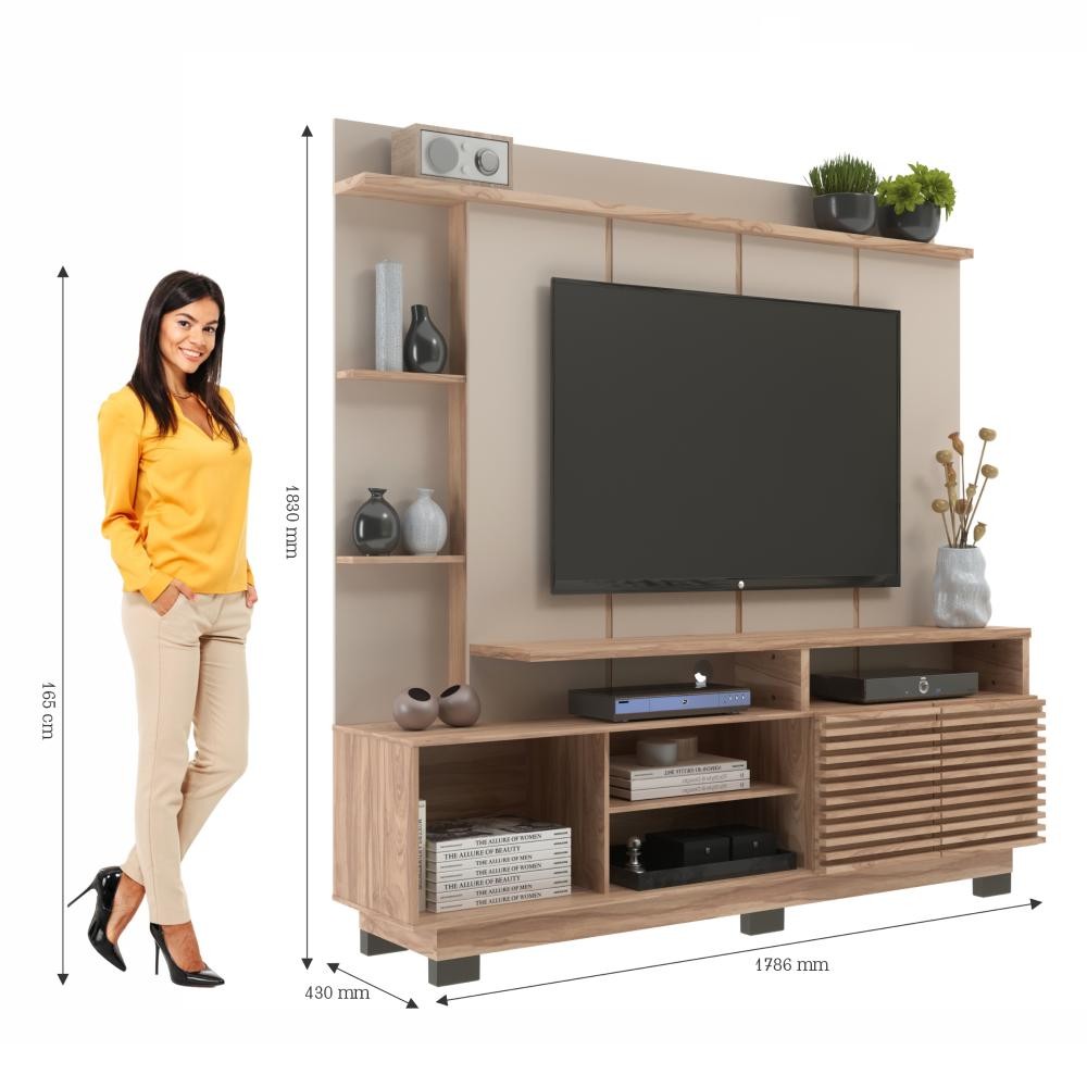 Rack com Painel para TV até 60 Polegadas 2 Portas Ripadas HO4200 Cor Marrom - Decibal Móveis