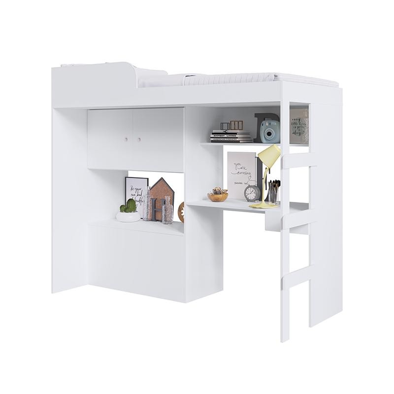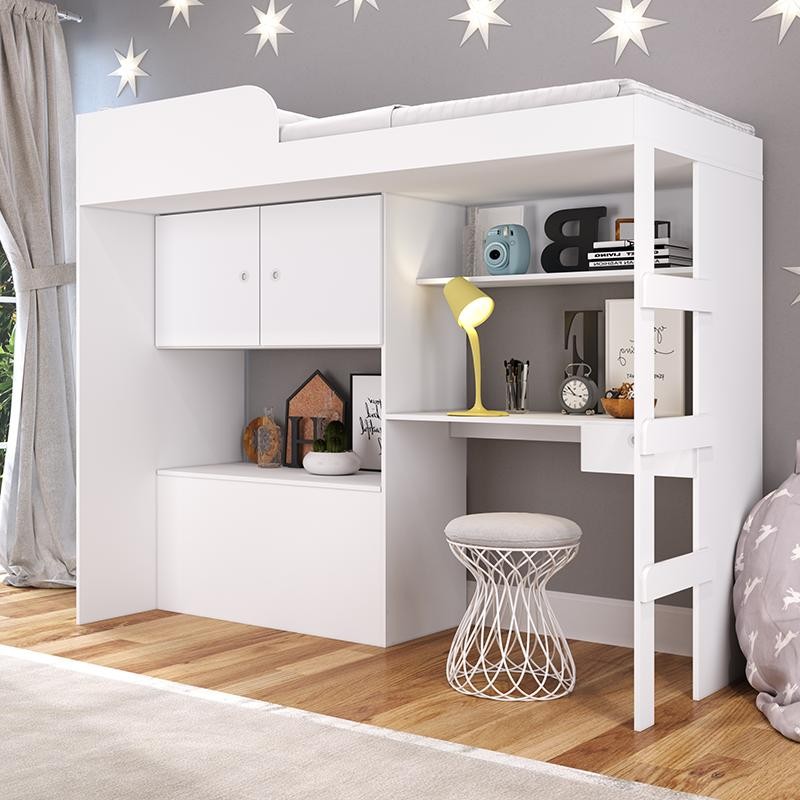 Cama de Solteiro Alta Baú Armário Escrivaninha Quarto Multifuncional Estação de Trabalho