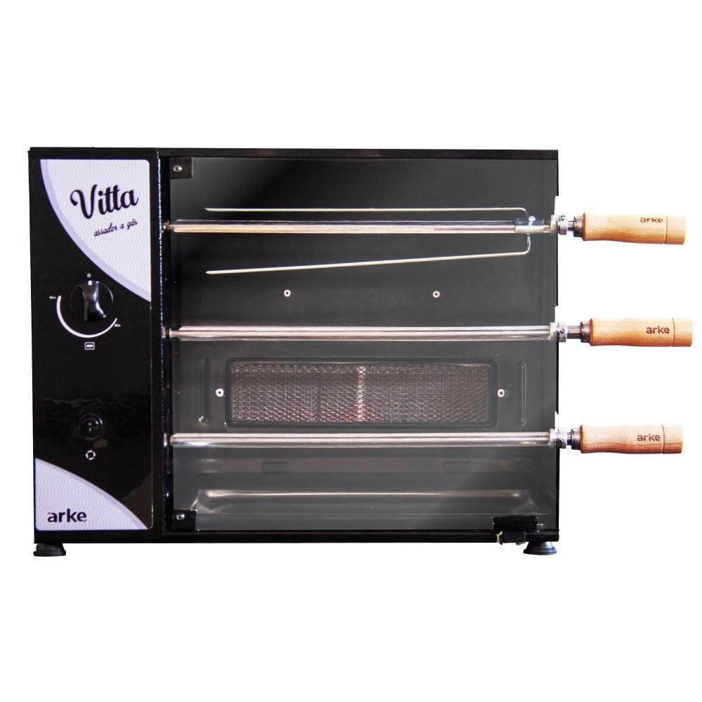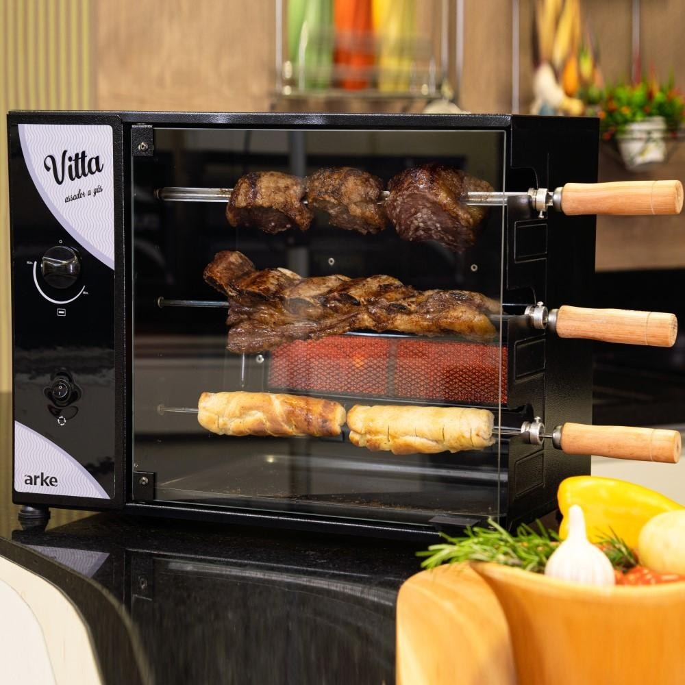 Churrasqueira a Gás Natural gn Rotativa Arke Vitta 3 Espetos Preto 220V