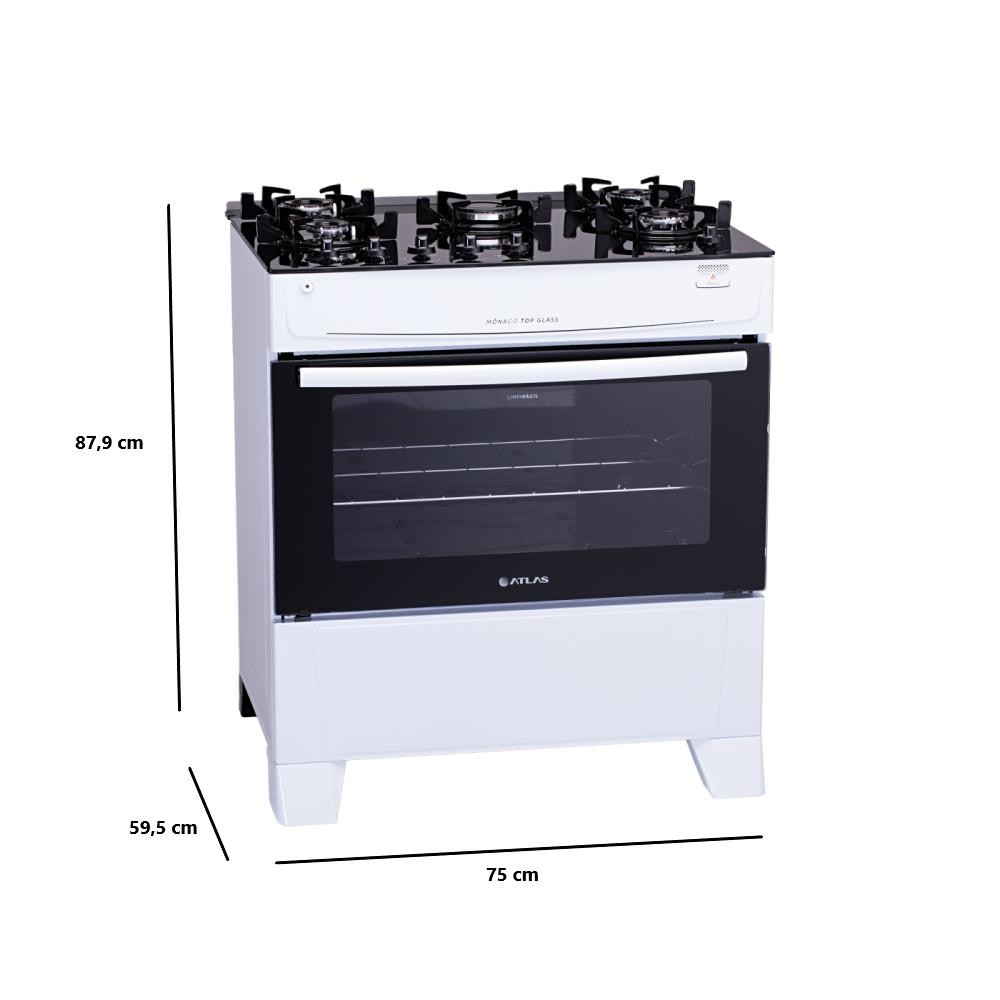 Fogão de Chão Piso À Gás 5 Bocas Acendimento Automático Forno Cozinha Moderna Atlas Branco Mônaco