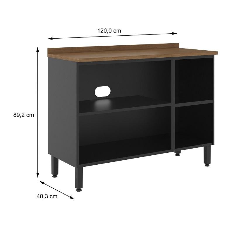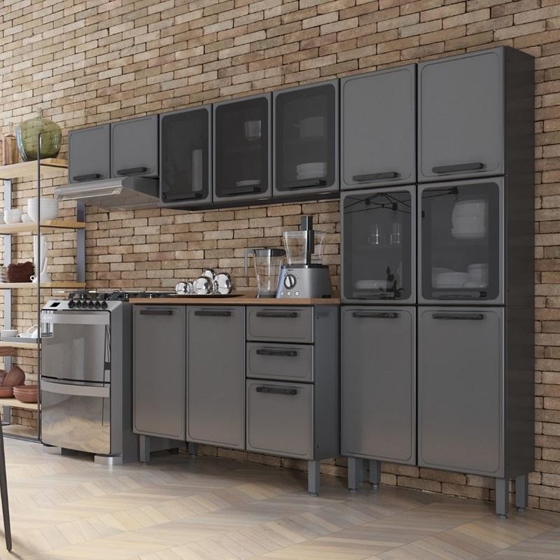 Balcão De Cozinha Com Tampo de Aço 3 Portas 2 Gaveta Grafite