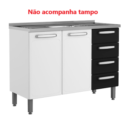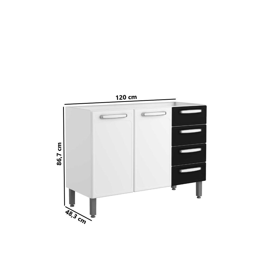 Balcão para Cozinha Bertolini Evidence em Aço com 2 Portas e 4 Gavetas Branco/Preto