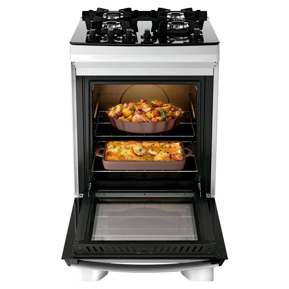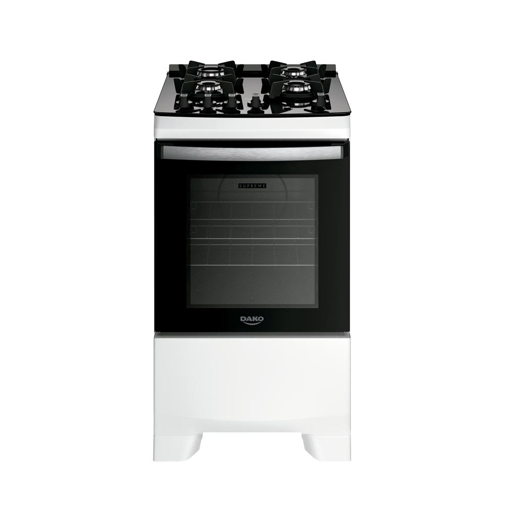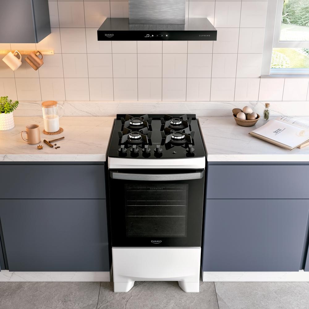 Fogão 4 Bocas a Gás Dako Supreme Glass Mesa de Vidro e Forno de 60L Bivolt Branco