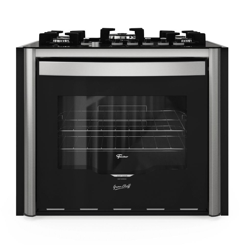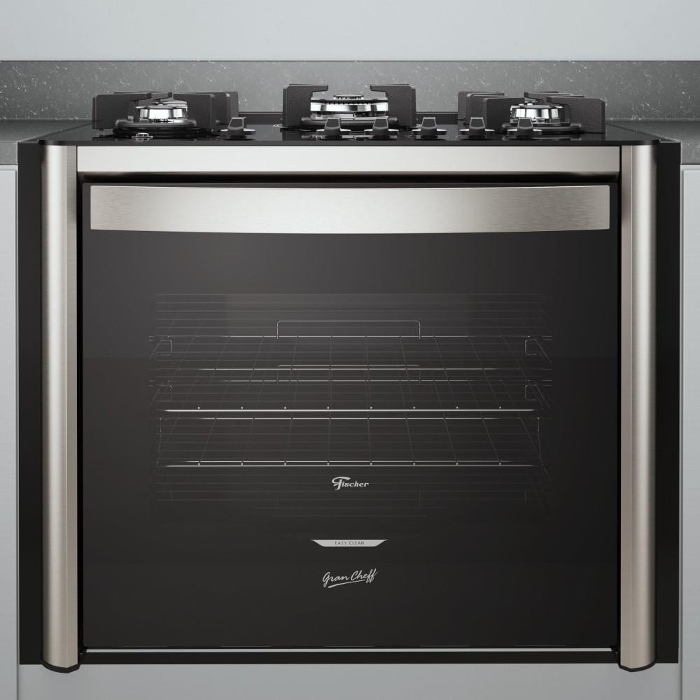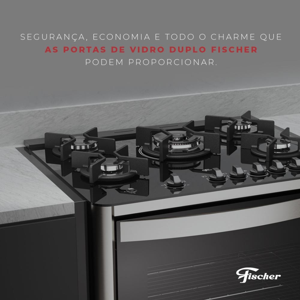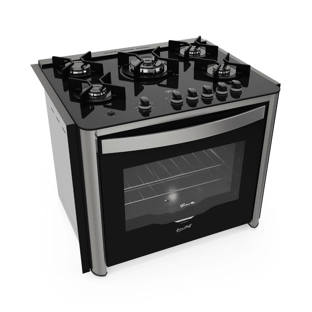 Fogão de Embutir 5 Bocas a Gás Fischer Gran Cheff com Mesa de Vidro e Grill Elétrico Preto 127V