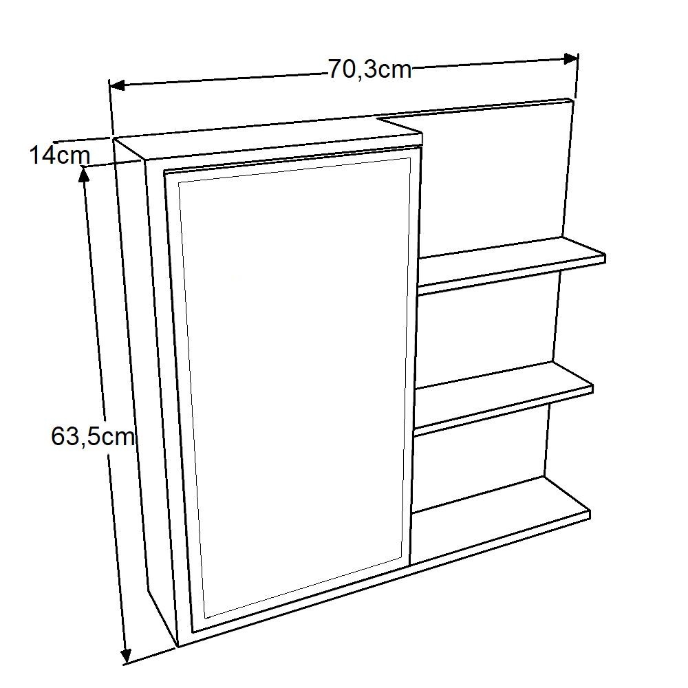 Armário Espelheira para Banheiro 1 Porta 2 Prateleiras Mel/Arenas Paula ES2001 - Faema Móveis