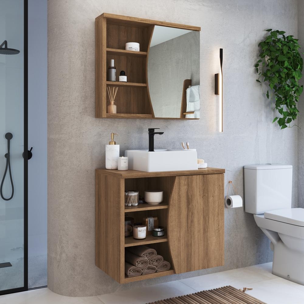 Gabinete de Banheiro 70cm com Cuba e Espelheira 2 Portas Mel Laura CJ9680 - Faema Móveis