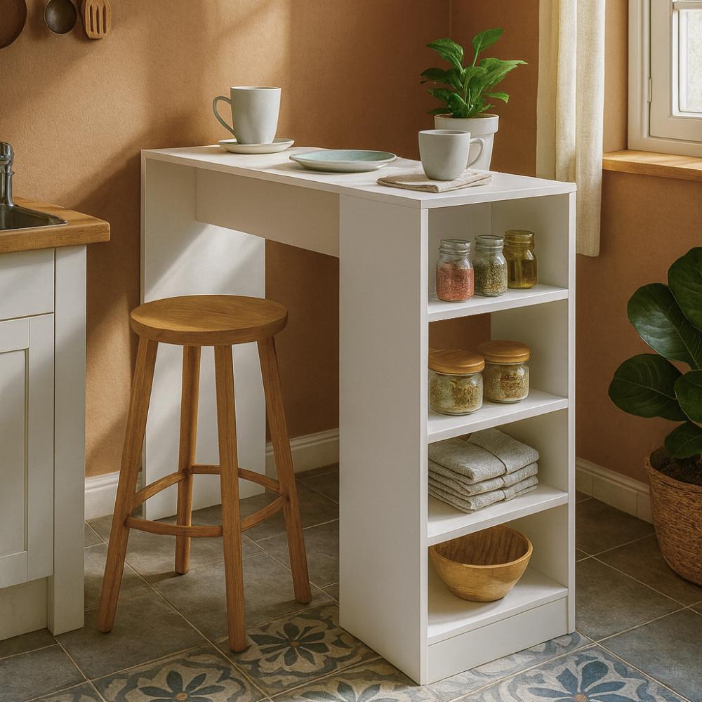Bancada Balcão/Mesa de Cozinha Gourmet 3 Prateleiras 4 Nichos BMU158 120cm Cor Branco