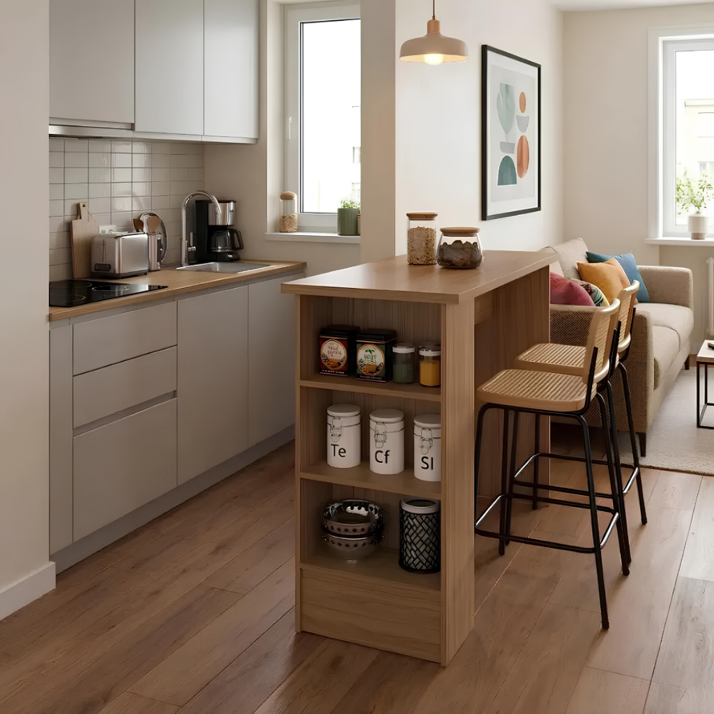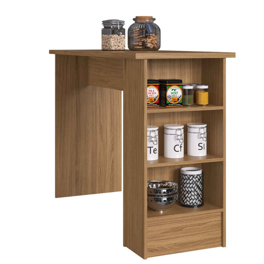 Bancada de Cozinha Ilha Gourmet Americana 2 Prateleiras 130cm Gaia CO8000 Marrom - Decibal Móveis