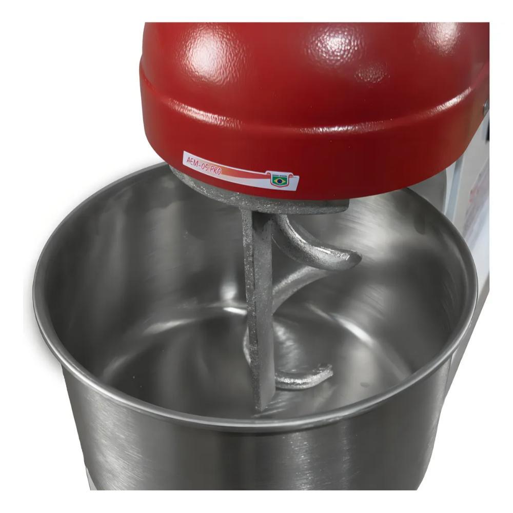 Amassadeira Espiral Maná 5 kg Profissional 4 Velocidades 1200w Vermelho/Branco Bivolt - AEM-5
