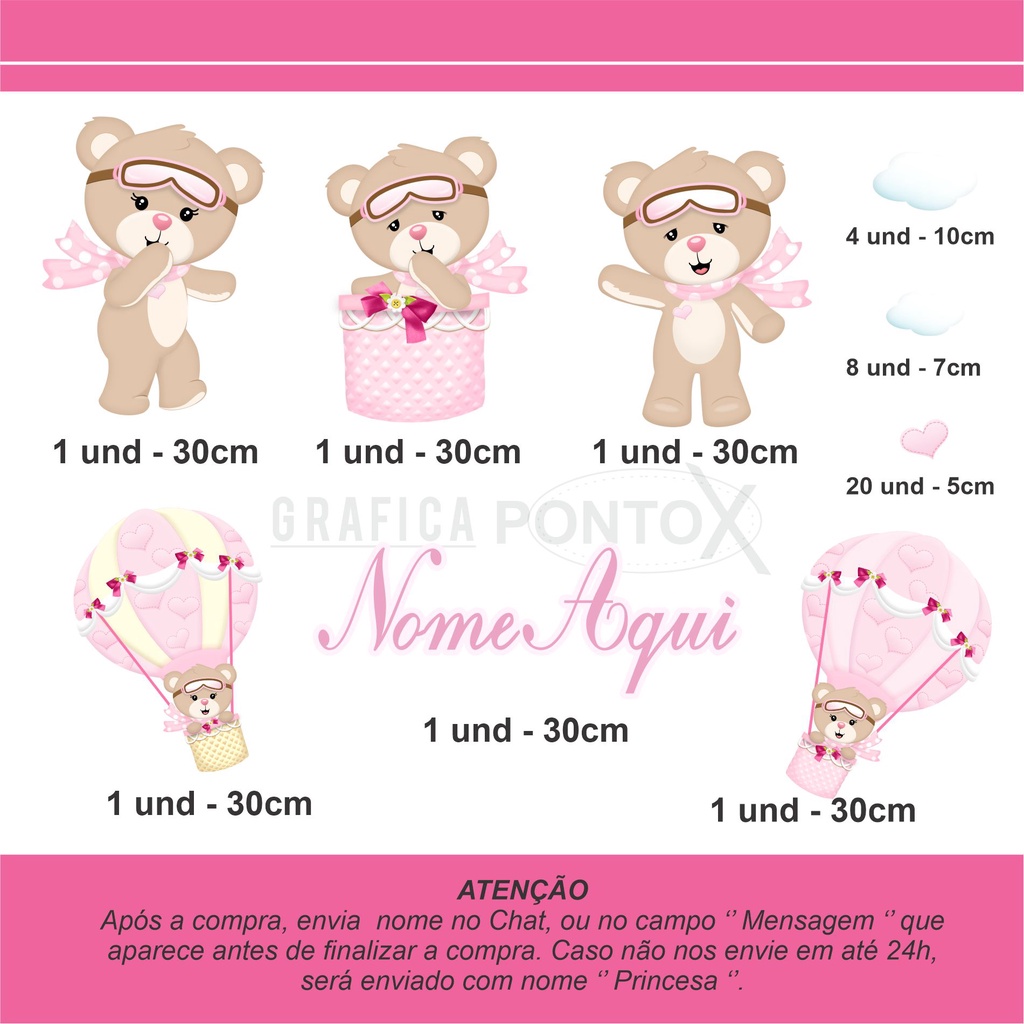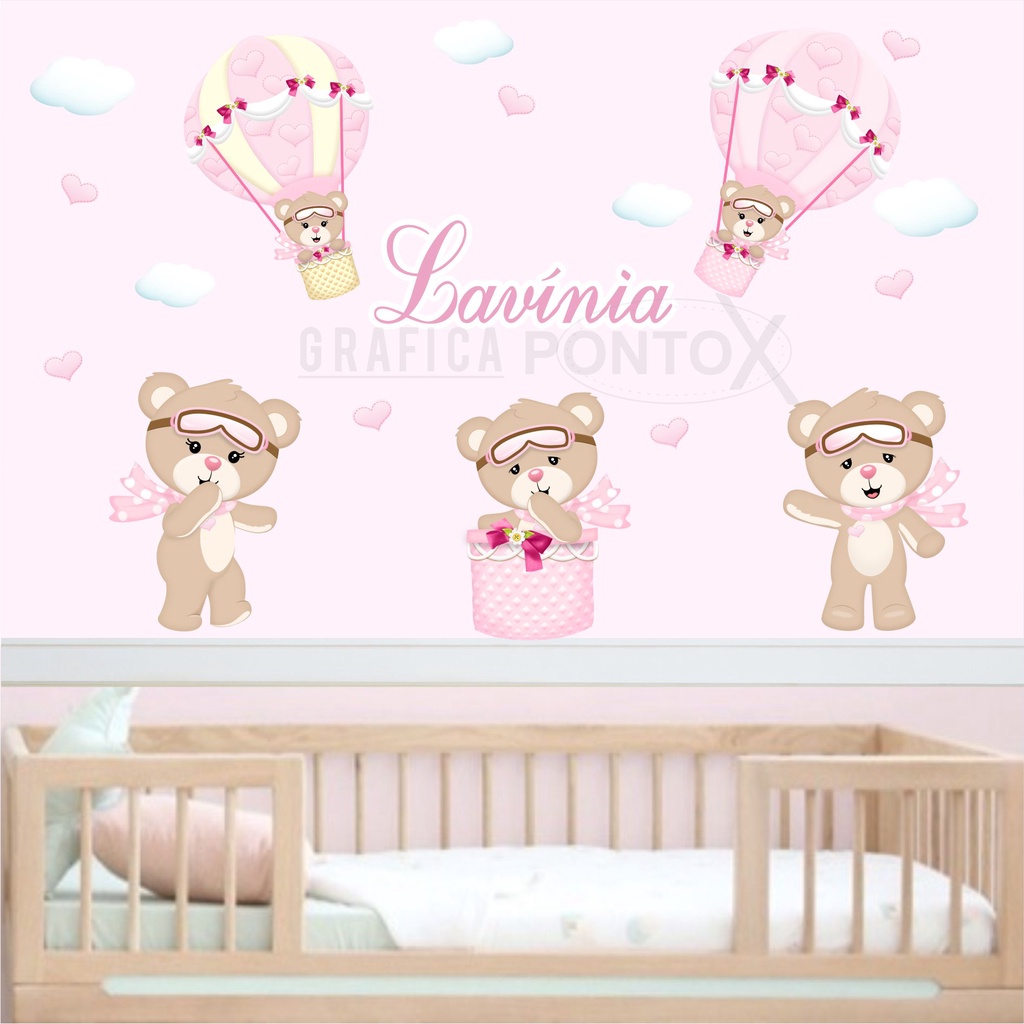 KIT Adesivos de Parede Ursinha Baloeira Decoração de Quarto Infantil