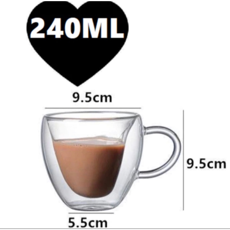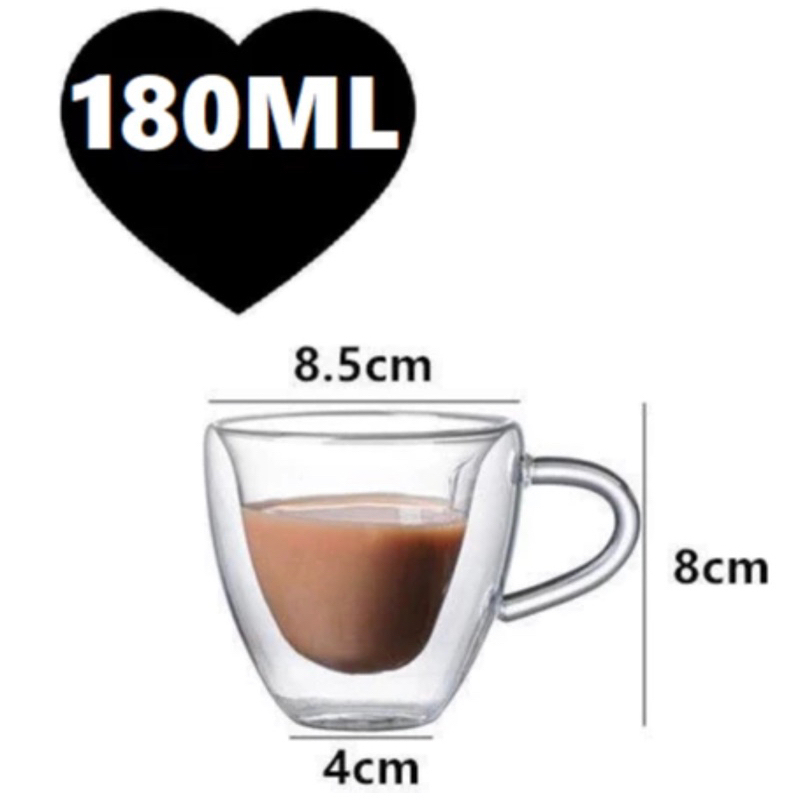 Xicara de Coração Parede Camada Dupla Café Chá Sucos 180mL OU 240mL
