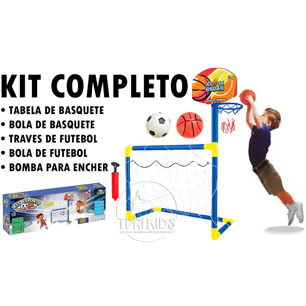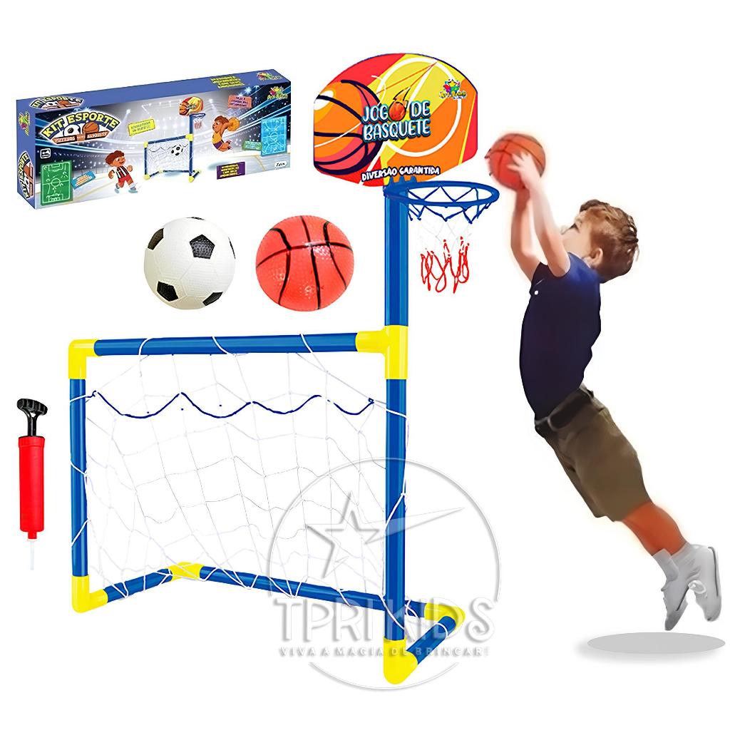 KIT 2 EM 1 FUTEBOL E BASQUETE BRINQUEDO INFANTIL CRIANÇA MENINO MENINA JOGO DIVERTIDO INTERATIVO EDUCATIVO CRIATIVO JOGO