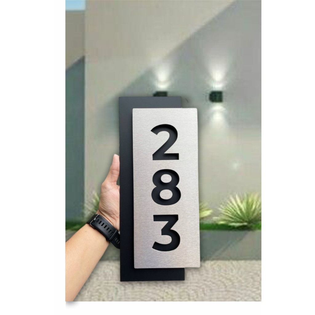 Número para casa, Placa sobreposta 30x12cm preto com prata, número para residência, apartamento, prédio.