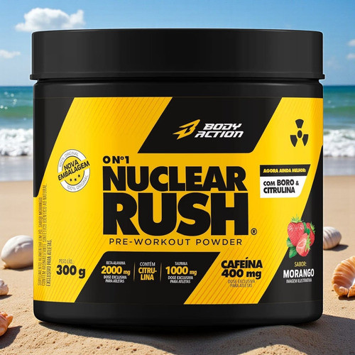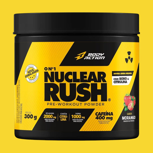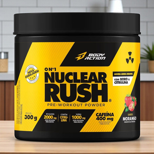Energia Pre Treino Nuclear Rush 300g Bodyaction Morango