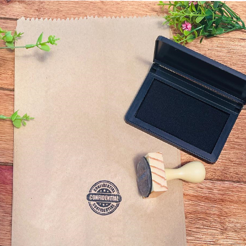KIT CARIMBO PERSONALIZADO 4X4 CM PARA SACOLAS, SACOS KRAFT