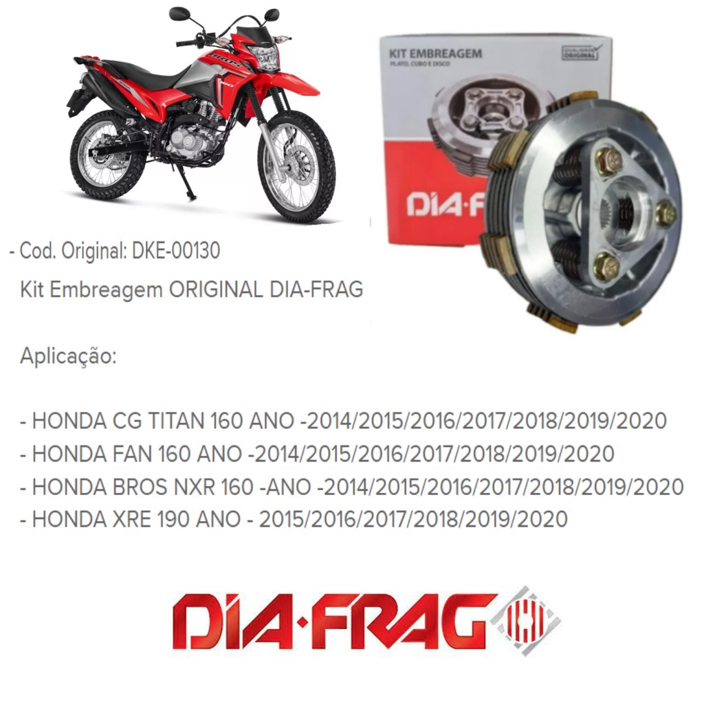 Kit Embreagem Honda CG TITAN FAN Nxr Bros 160 XRE 190 2014 à 2024 Original Diafrag