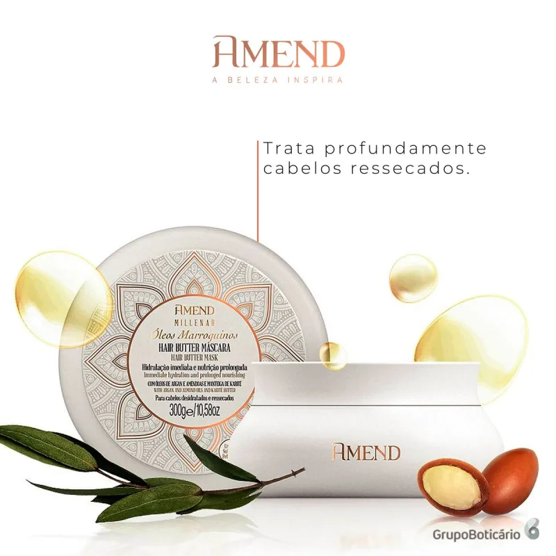 Hair Butter Mascara Hidratação e Nutrição AMEND Millenar Óleos Marroquinos - 300g