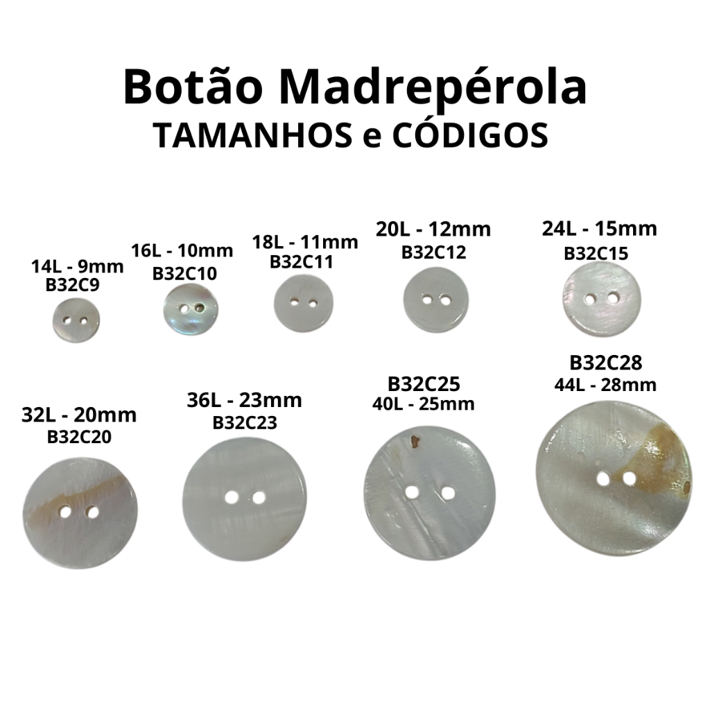 Botao Madreperola Natural Casquinha Tam 24 e variados tamanhos - 12pcs 50 pcs 100 pcs