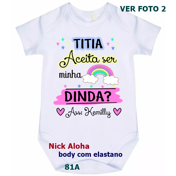 BODY BEBÊ TITIA ACEITAR SER MINHA DINDA COM NOME DO BEBÊ CÓD 81A