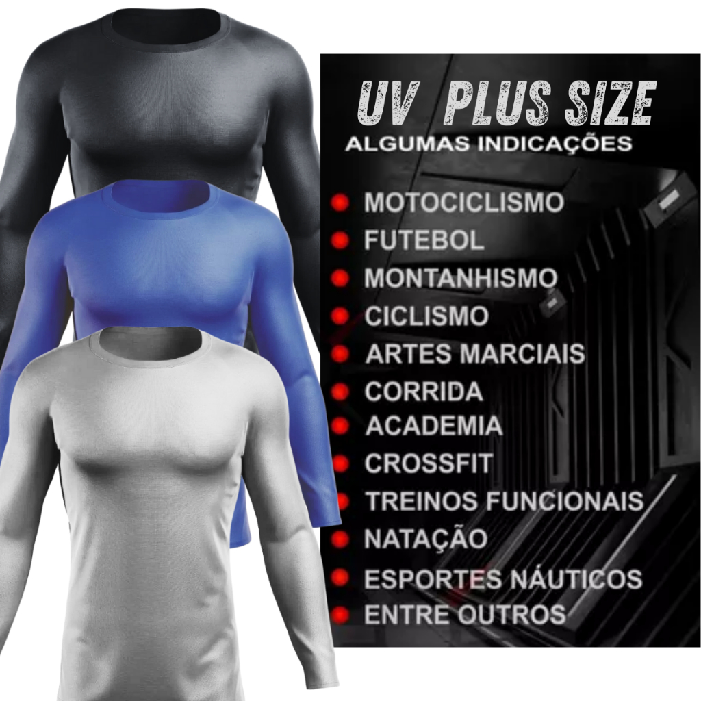 KIT 2 Camisa uv PLUS SIZE 2 UNIDADES segunda pele masculino e feminina moda fitness envio imediato