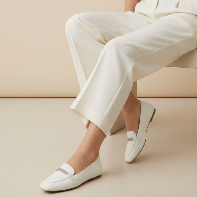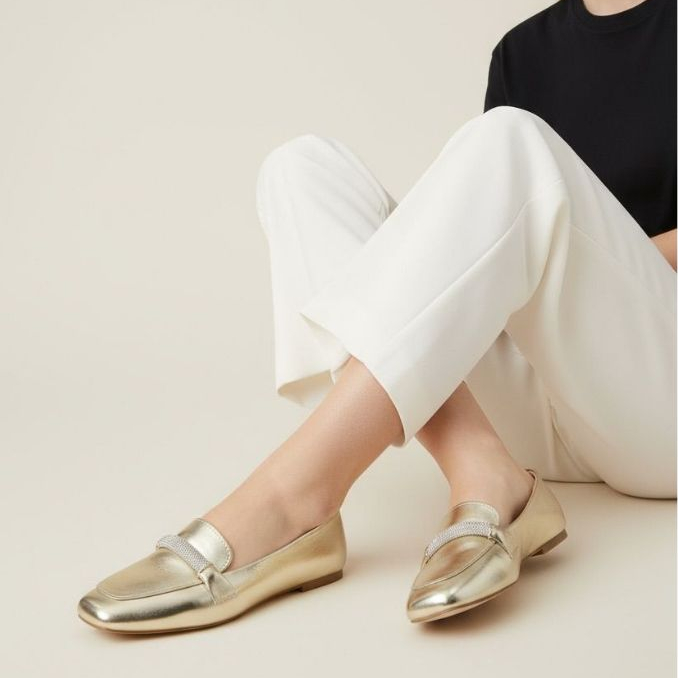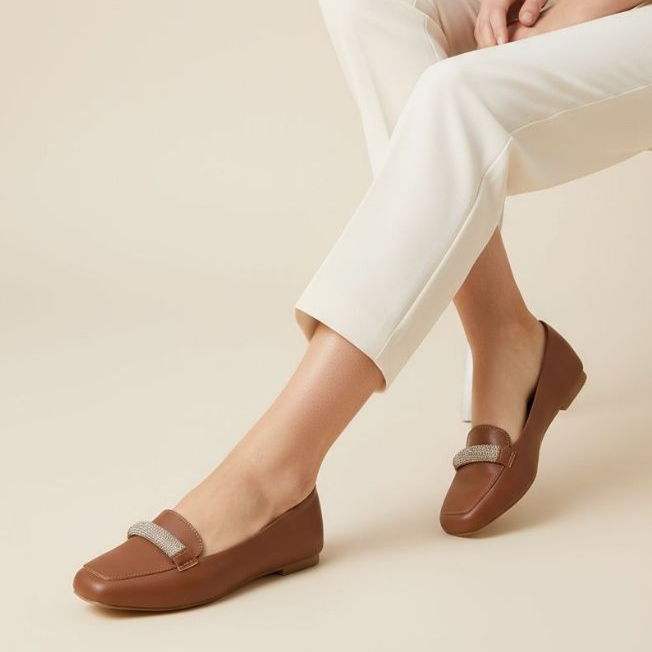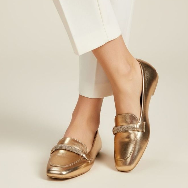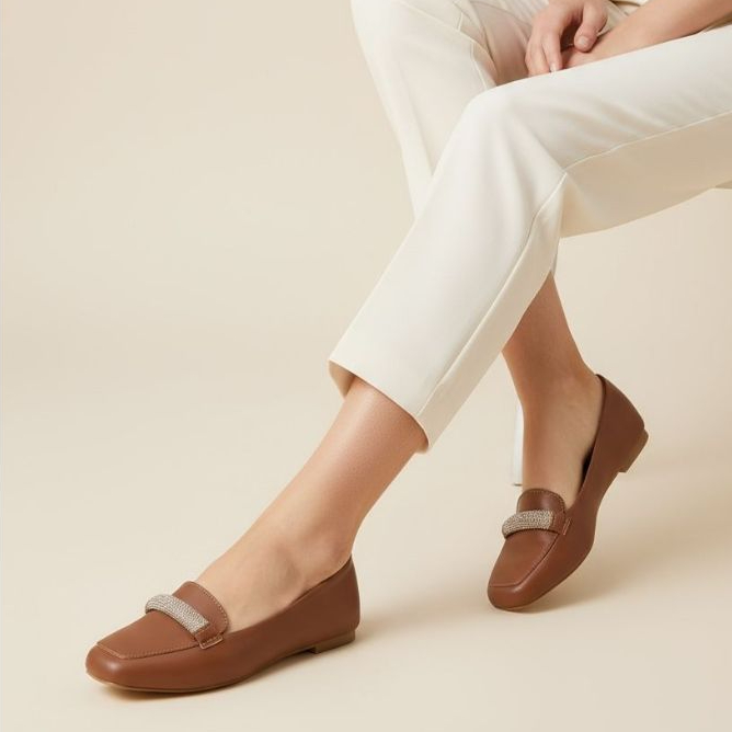 Sapatilha Feminina Confortável Luxo Elegante Mocassim Sapato Feminino Bico Quadrado Prata Strass