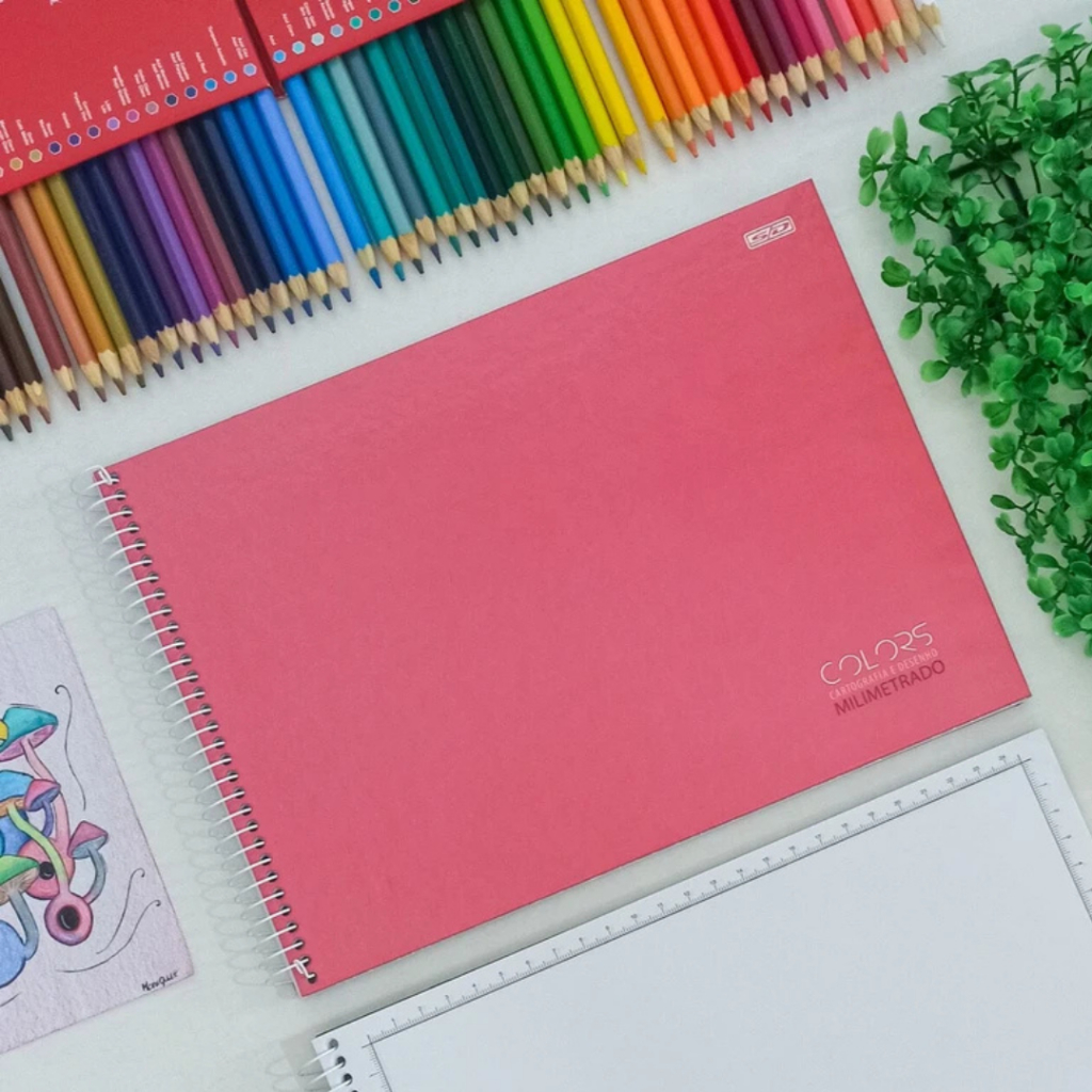 Caderno de Cartografia e Desenho Milimetrado Lunix Espiral 60 Folhas (AzulPreto Rosa Roxo) - Tilibra
