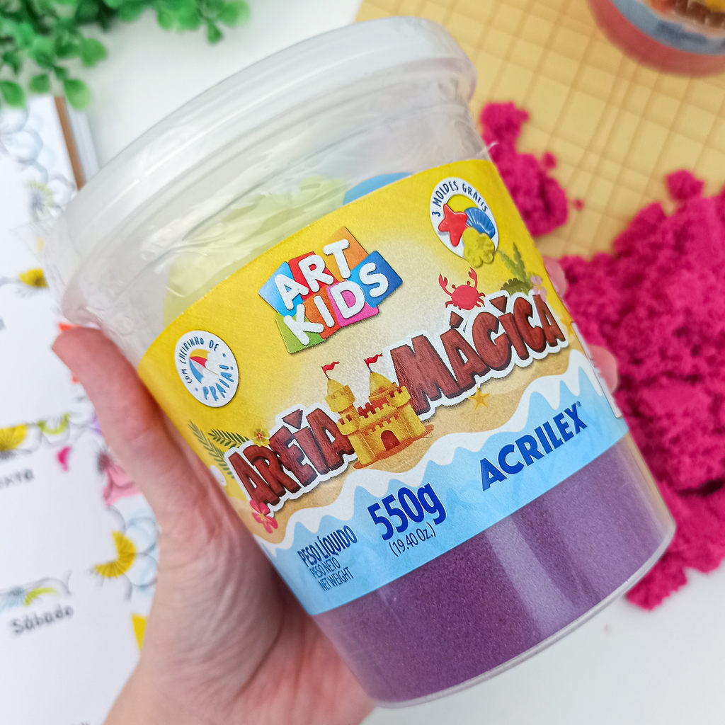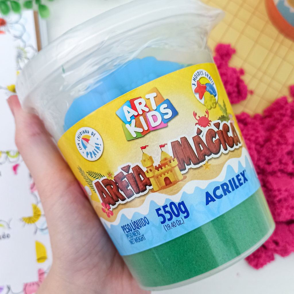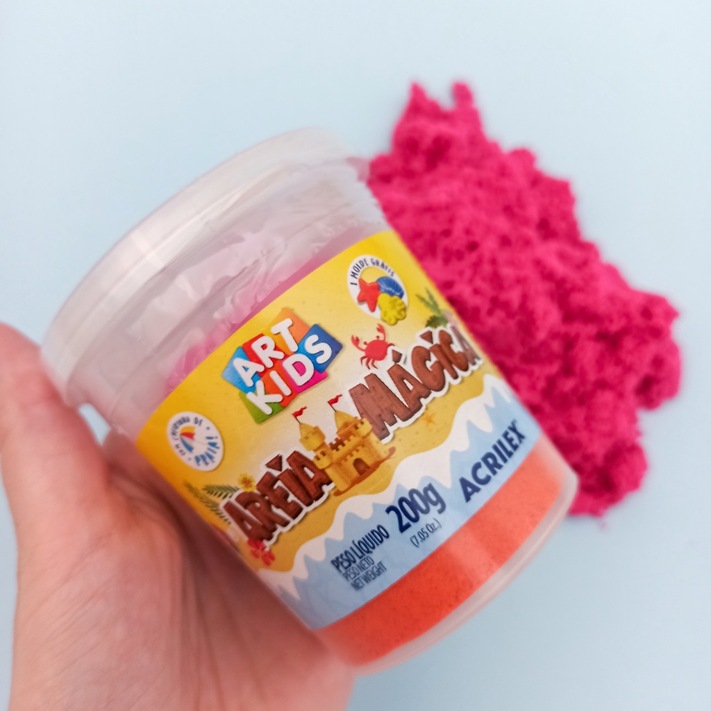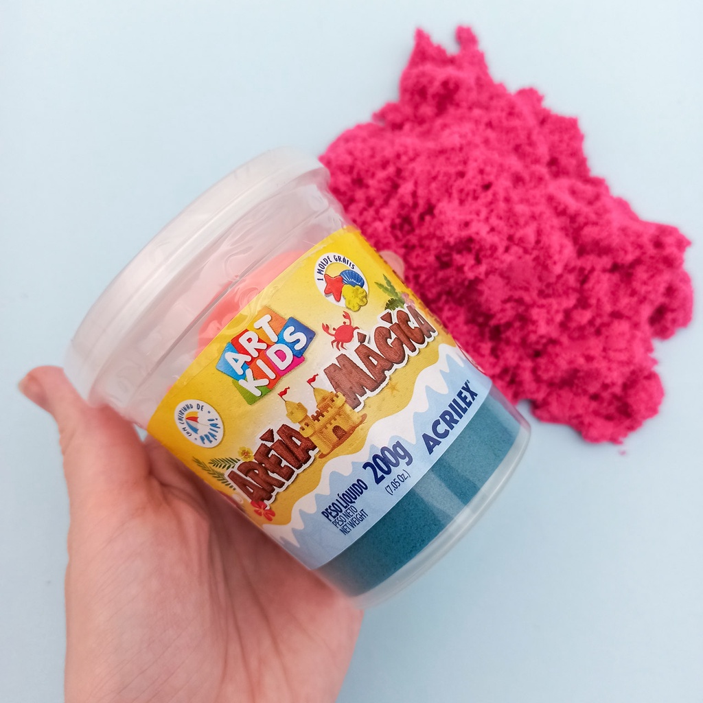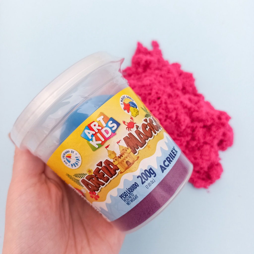 Areia Mágica Cinética ArtKids 200 550g + Molde Azul Laranja Natural Rosa Roxo Verde Acrilex Movediça
