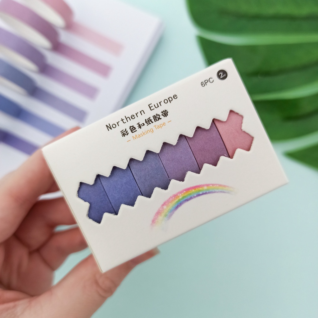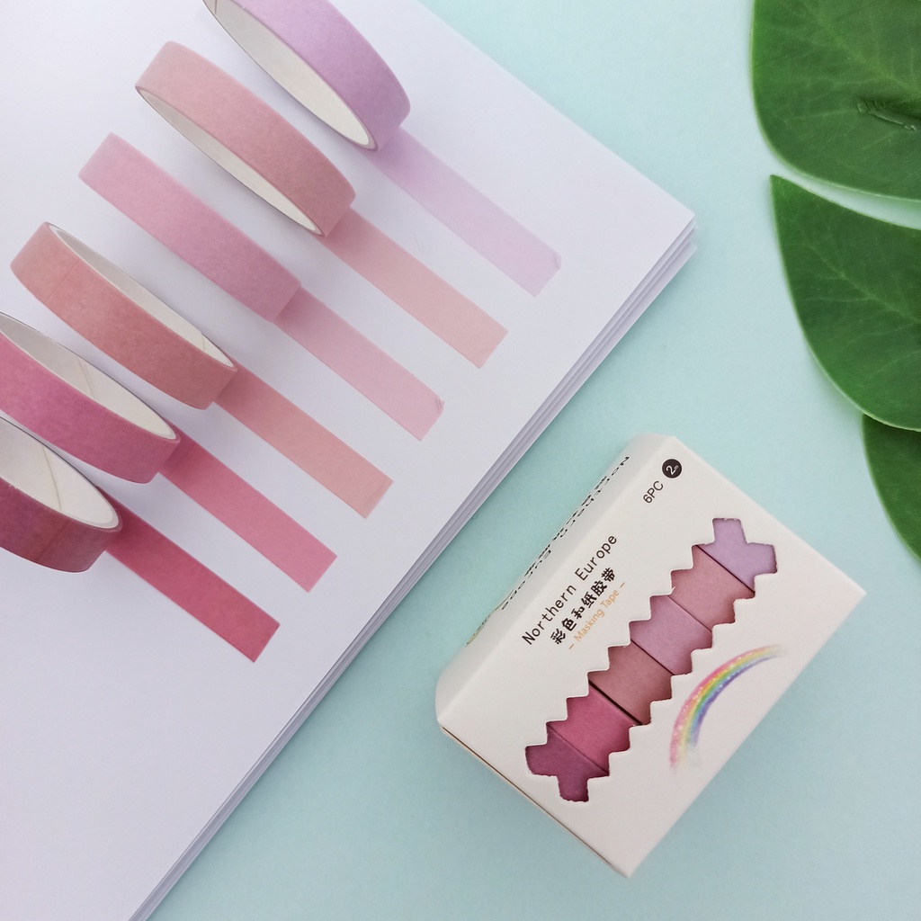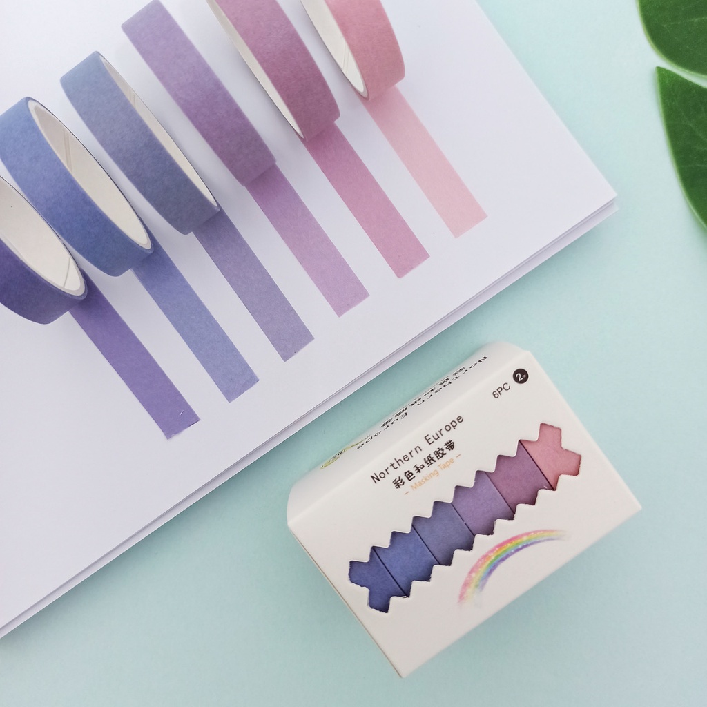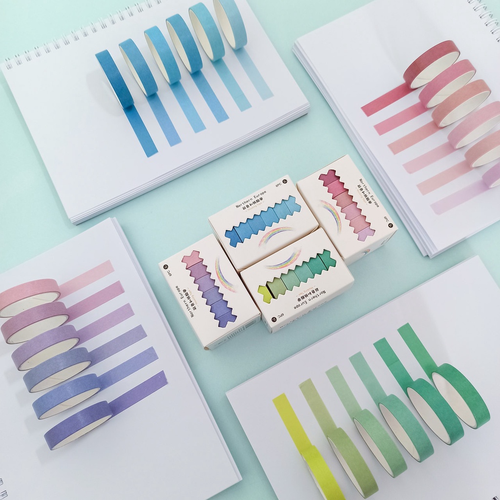 Fita Adesiva Colorida Washi Tape Tom Pastel Degradê 10 mm x 2 m com 6 Fitas - Importado