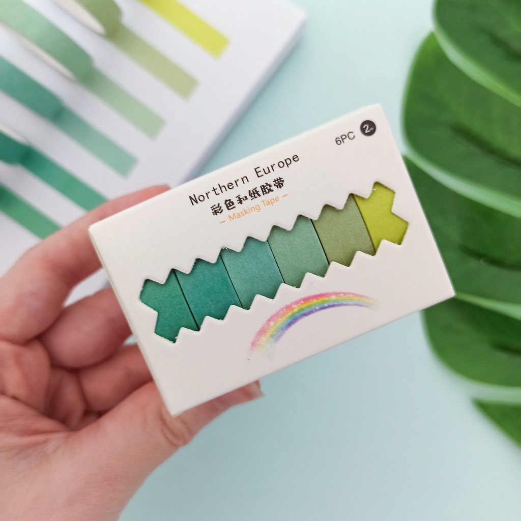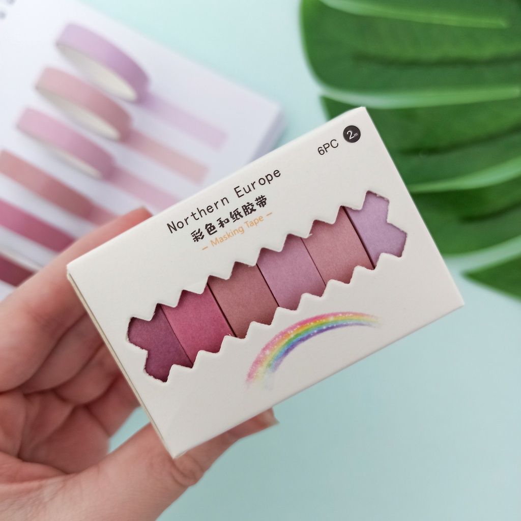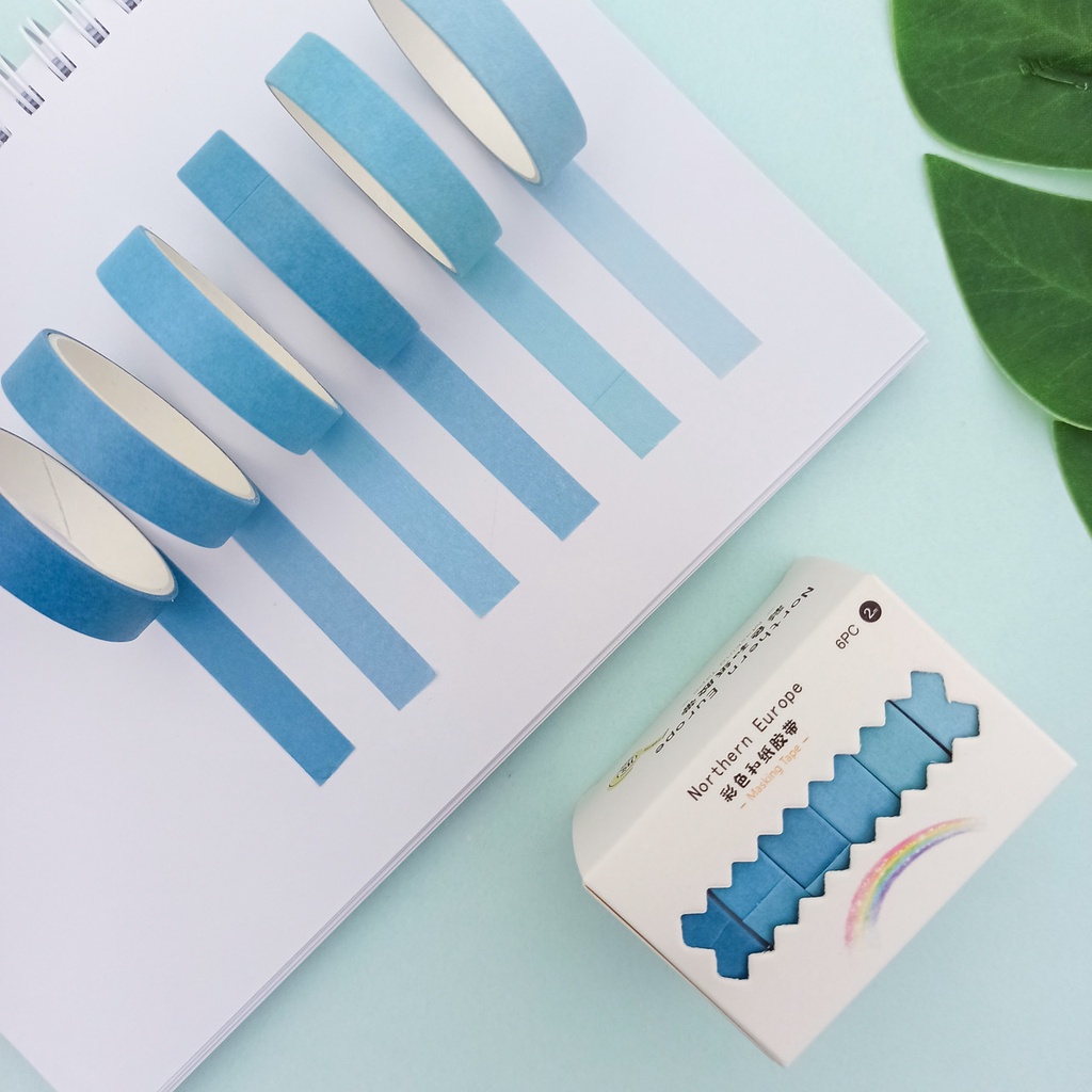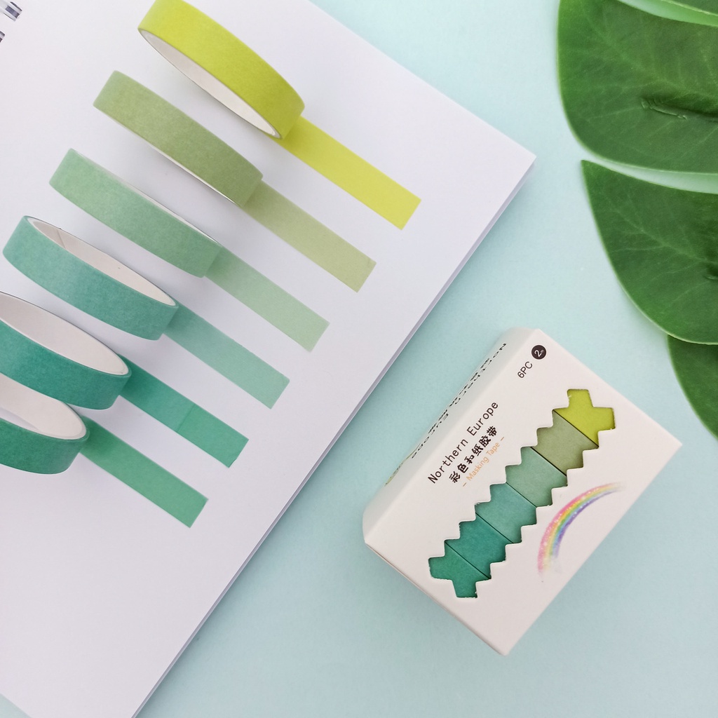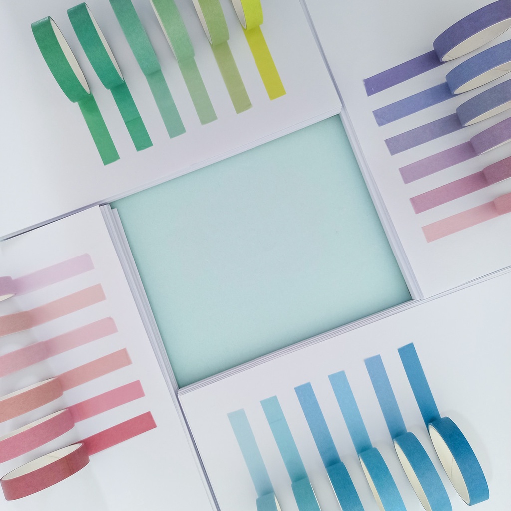 Fita Adesiva Colorida Washi Tape Tom Pastel Degradê 10 mm x 2 m com 6 Fitas - Importado
