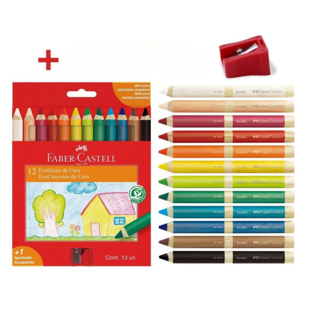 Giz de Cera Jumbo EcoGizes 12 Cores + Apontador - Faber Castell