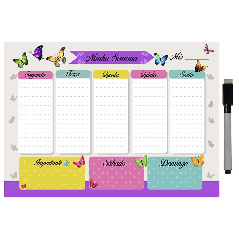 Quadro Planejador de Metal Semanal 20x26cm + Caneta