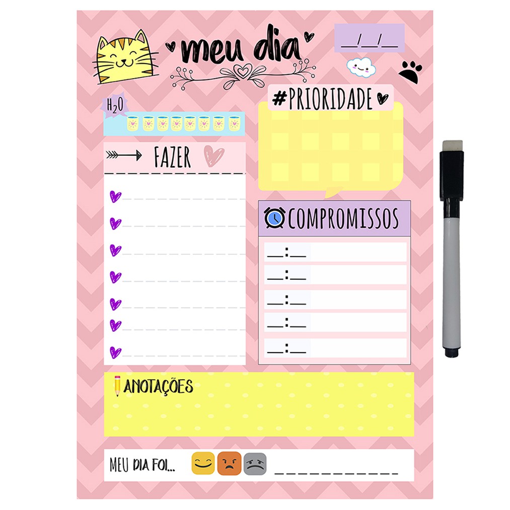 Quadro Planejador de Metal Diário 26x20cm + Caneta