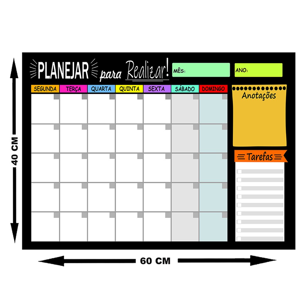 Mural Planejador de Metal Mensal 40x60cm + Caneta