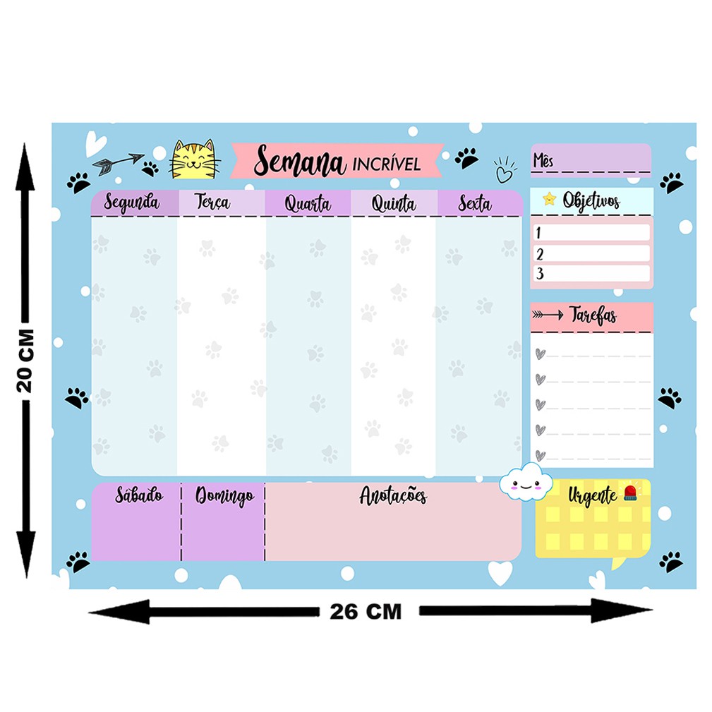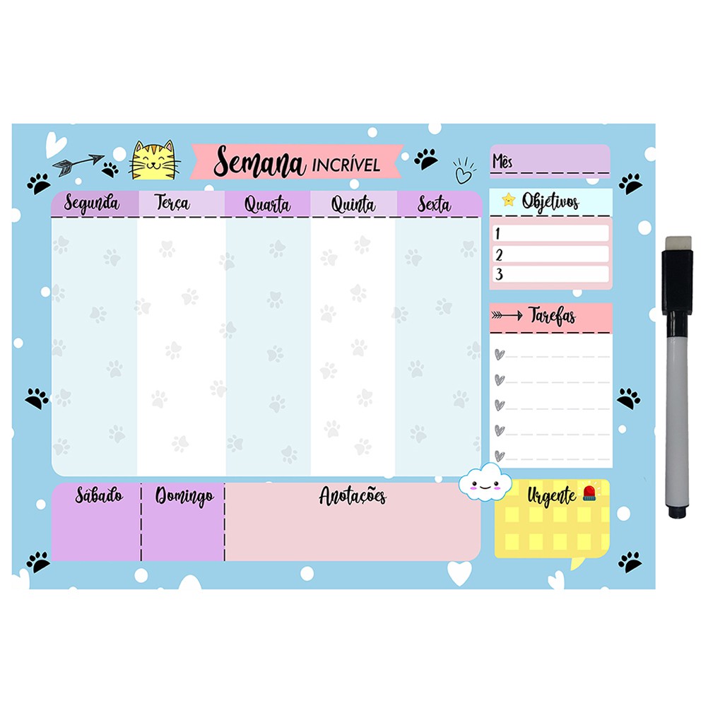 Quadro Planejador de Metal Semanal 20x26cm + Caneta
