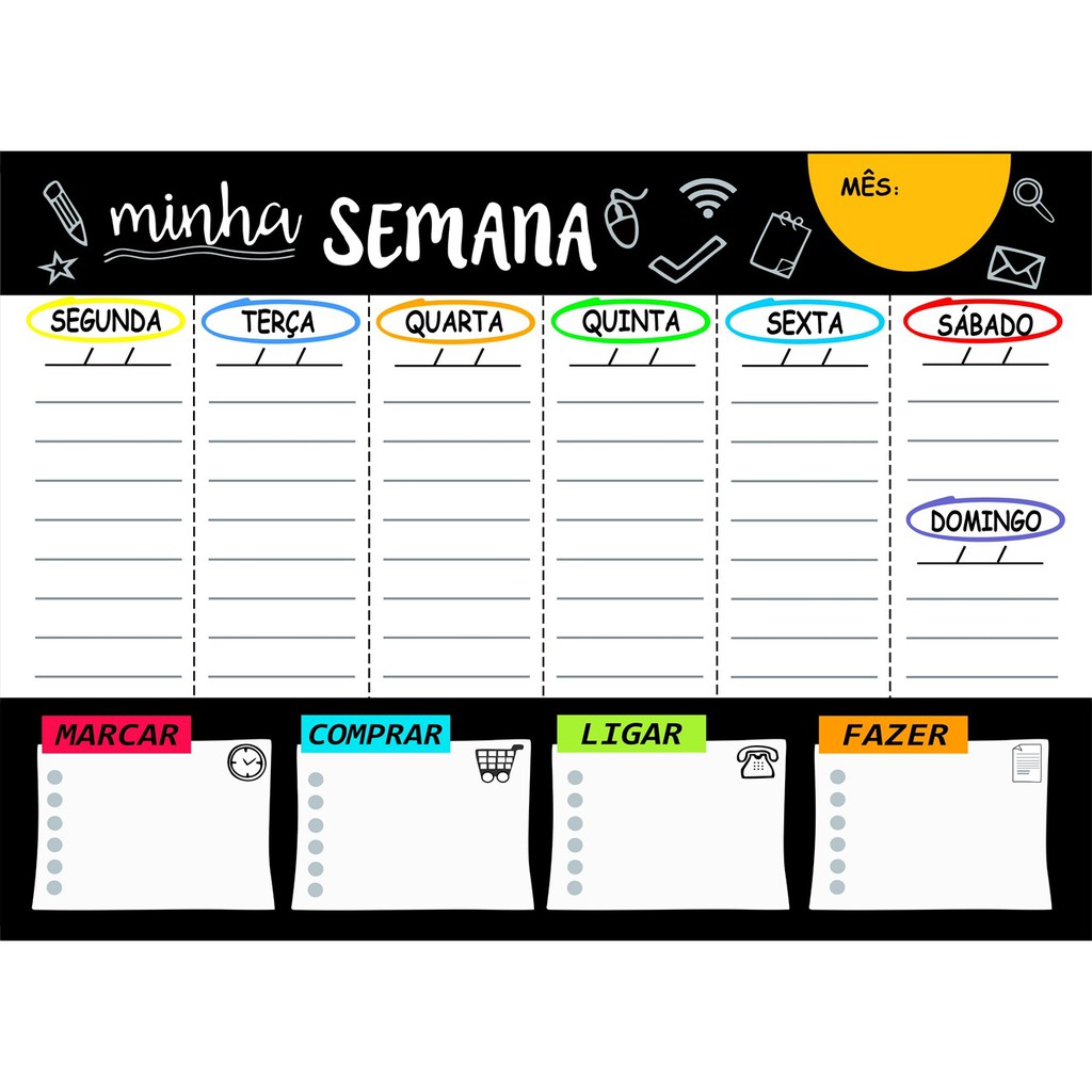 Quadro Planejador de Metal Semanal 20x26cm + Caneta