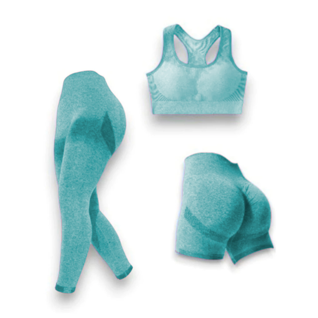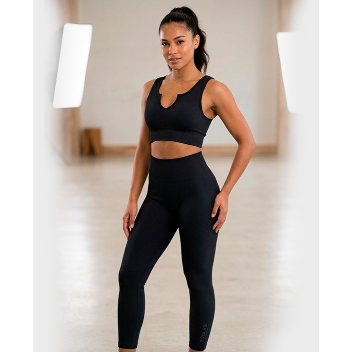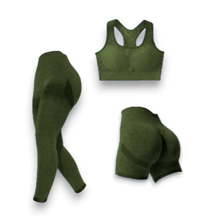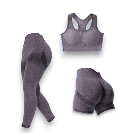 kit 3 Peças Top + Short + Calça legging leg Feminino Canelado Poliamida Grossa Esportivo Importado
